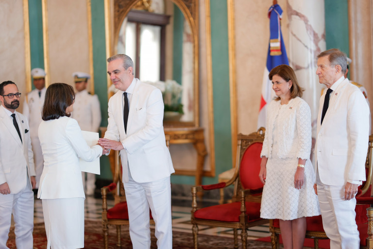 El presidente Luis Abinader, en compañía de la vicepresidenta Raquel Peña y el ministro del Ministerio de Relaciones Exteriores, el señor Roberto Álvarez, encabezó el acto de presentación de Cartas Credenciales de nuevos representantes diplomáticos que, a partir de hoy, estarán acreditados en la República Dominicana. Santo Domingo, República Dominicana, 28 de Noviembre 2023. Vp/ Jhon Escalante