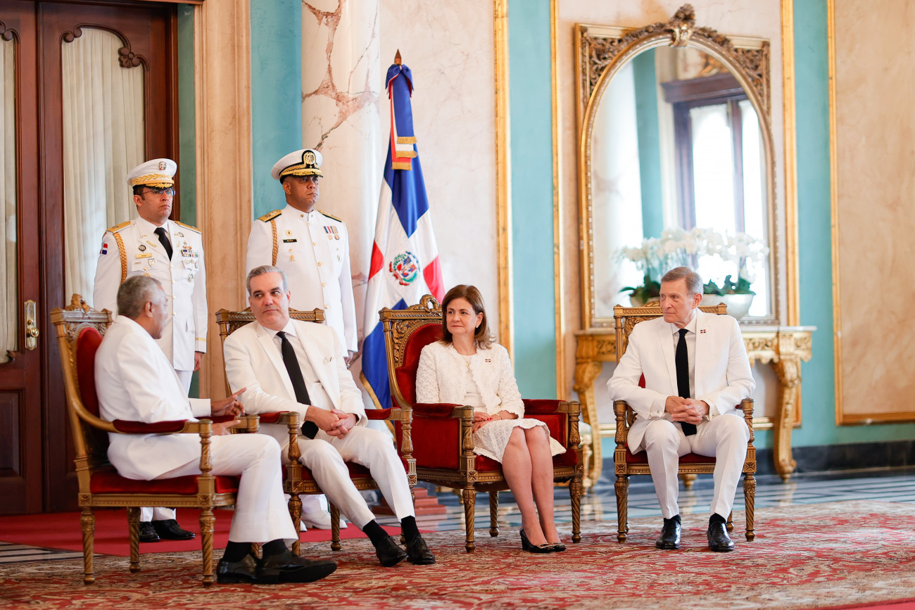 El presidente Luis Abinader, en compañía de la vicepresidenta Raquel Peña y el ministro del Ministerio de Relaciones Exteriores, el señor Roberto Álvarez, encabezó el acto de presentación de Cartas Credenciales de nuevos representantes diplomáticos que, a partir de hoy, estarán acreditados en la República Dominicana. Santo Domingo, República Dominicana, 28 de Noviembre 2023. Vp/ Jhon Escalante