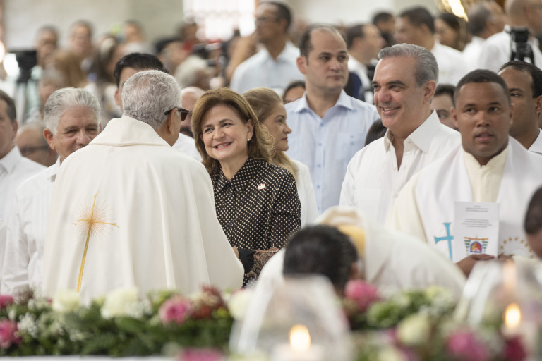 El presidente Luis Abinader, junto a la vicepresidenta Raquel Peña, asistió a la toma de posesión de S.E.R Monseñor Héctor Rafael Rodríguez, como arzobispo de la Arquidiócesis de Santiago de los Caballeros. Santo Domingo, República Dominicana, 2 de Diciembre 2023. Vp/ Jhon Escalante