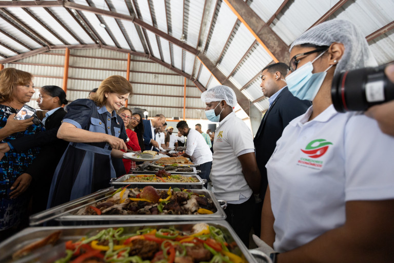 La vicepresidenta Raquel Peña se trasladó hoy a Pekín, en la zona sur de Santiago, para celebrar con sus lugareños un almuerzo del programa Navidad del Cambio. Esta iniciativa es organizada por Comedores Económicos. Santo Domingo, República Dominicana, 7 de Diciembre 2023. Vp/ Amehd Gitte