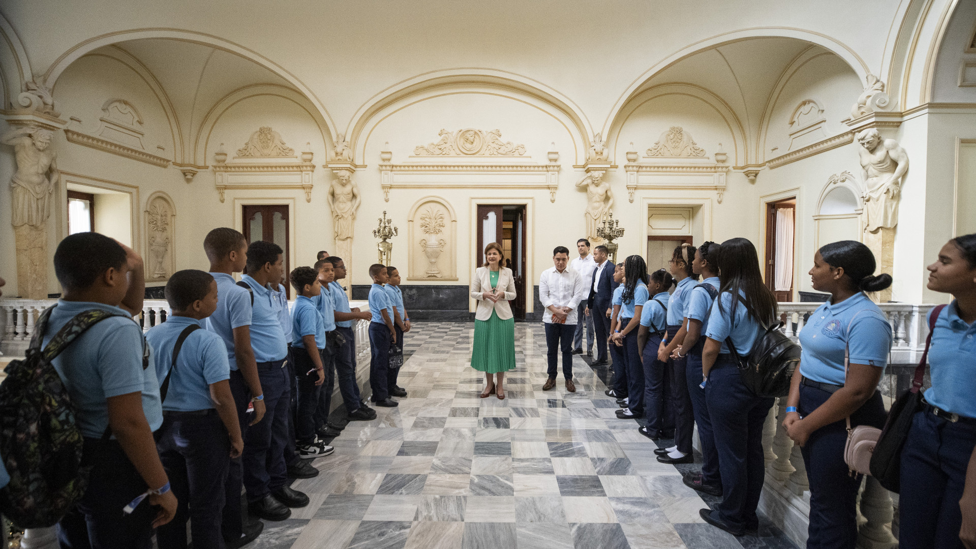 La vicepresidenta Raquel Peña compartió con un grupo de estudiantes del Colegio Evangélico Emanuel, que visitó en el Palacio Nacional. Santo Domingo, República Dominicana. 14 de Diciembre 2023. VP/ Jhon Escalante