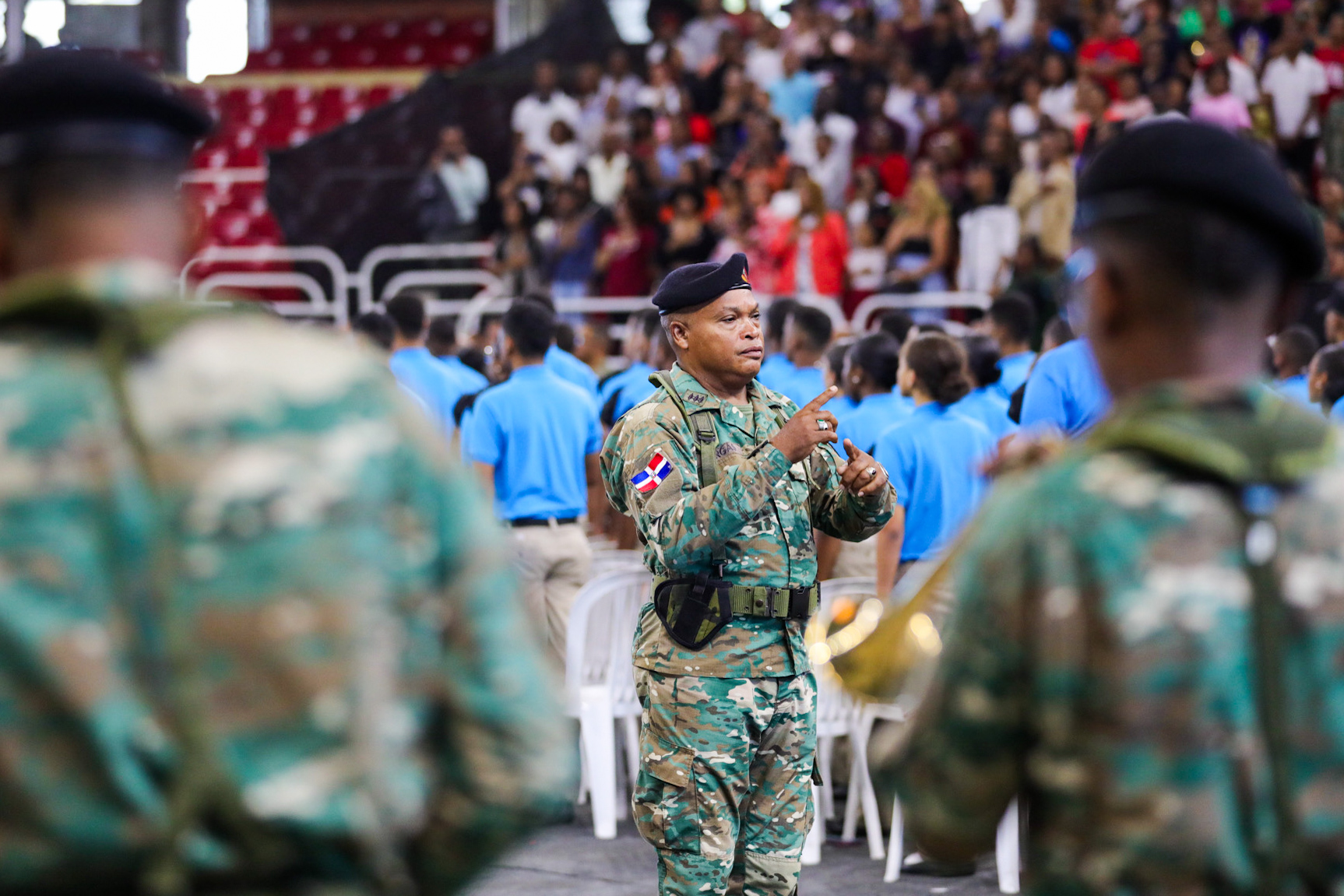 En representación del presidente Luis Abinader, la vicepresidenta Raquel Peña encabezó el acto de la Graduación del Entrenamiento Militar Básico de la XXXIV Promoción «Víctor Méndez Capellán», del Programa de Formación en Valores del Servicio Militar Voluntario del Ministerio de Defensa, donde 6311 oficiales recibieron sus certificados por haber culminado su entrenamiento. Santo Domingo, República Dominicana. 21 de Diciembre 2023. VP/ Sintia Méndez
