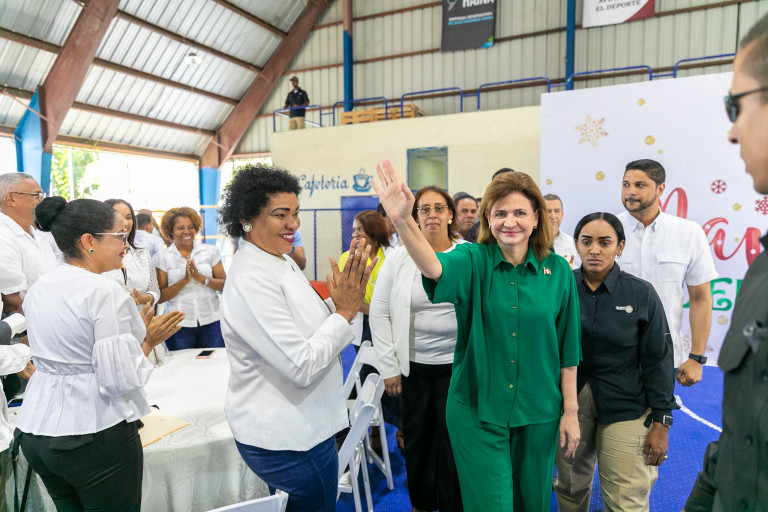 La vicepresidenta Raquel Peña compartió con moradores de las localidades Yaguate, Palenque, Doña Ana y Los Cacaos durante la realización de un almuerzo del programa #NavidaddelCambio, organizado por Comedores Económicos. Santo Domingo, República Dominicana. 23 de Diciembre 2023. VP/ Pedro Rodriguez