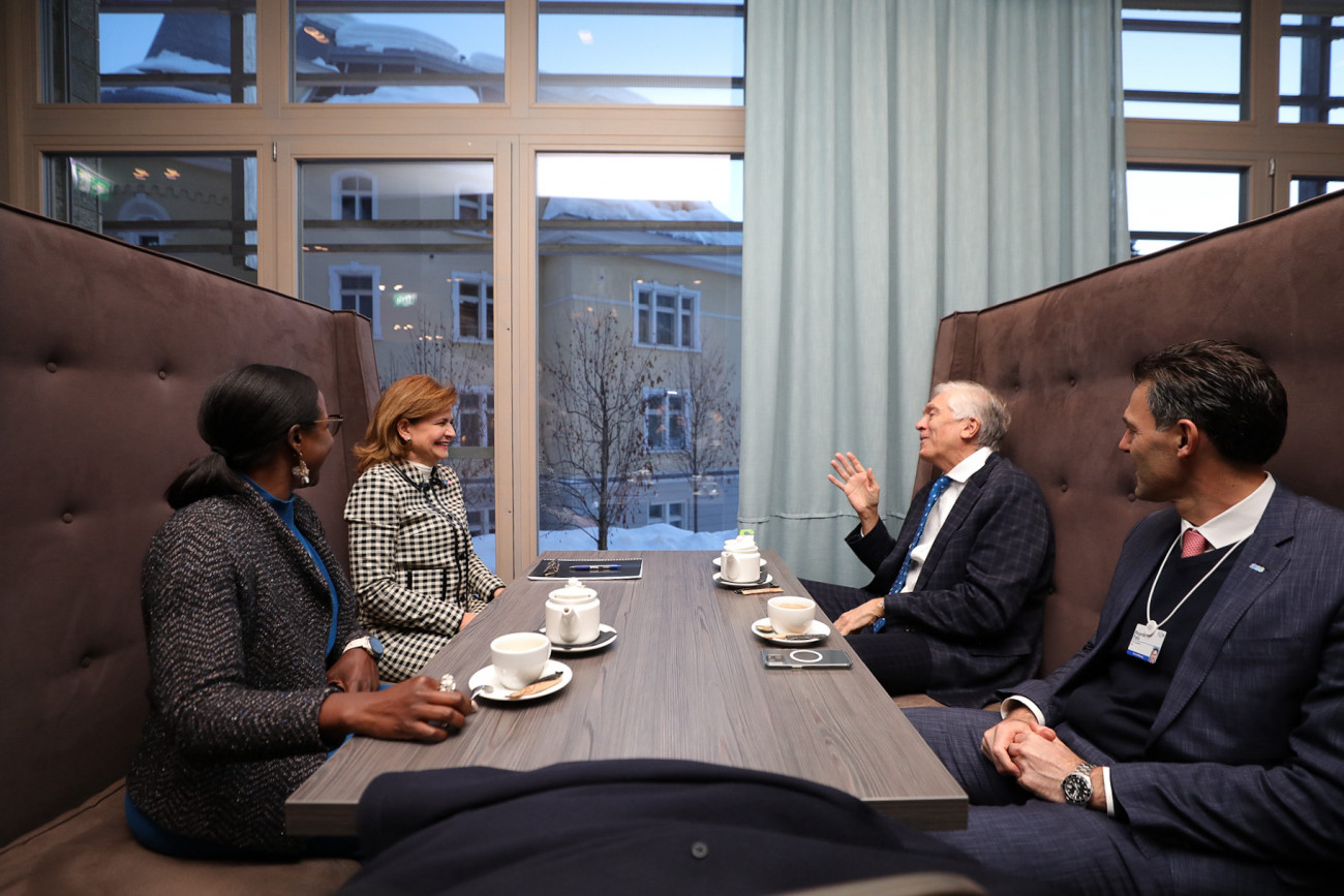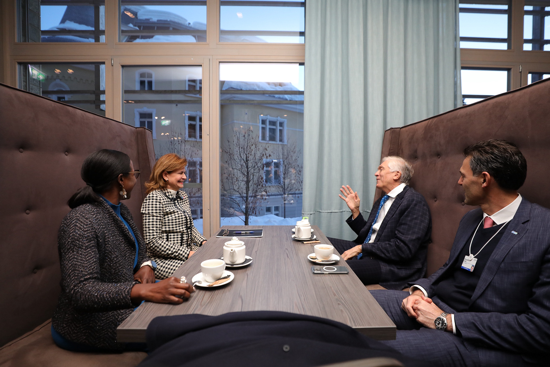 En el marco de la 54.ª Reunión Anual del Foro Económico Mundial, la vicepresidenta Raquel Peña conversó con el señor Andrés Gluski, presidente de la empresa AES Corporation. Dialogaron sobre temas que seguirán impulsando la relación establecida con la República Dominicana. Davos, Suiza. 16 de enero 2024. VP/ Jhon Escalante