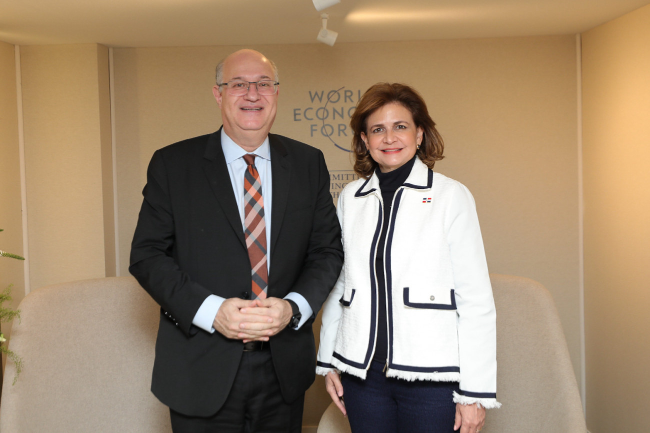 La vicepresidenta Raquel Peña estuvo reunida con el presidente del Banco Interamericano de Desarrollo, el señor Ilan Goldfajn, durante las actividades de la reunión anual del Foro Económico Mundial. Davos, Suiza. 17 de enero 2024. VP/ Jhon Escalante