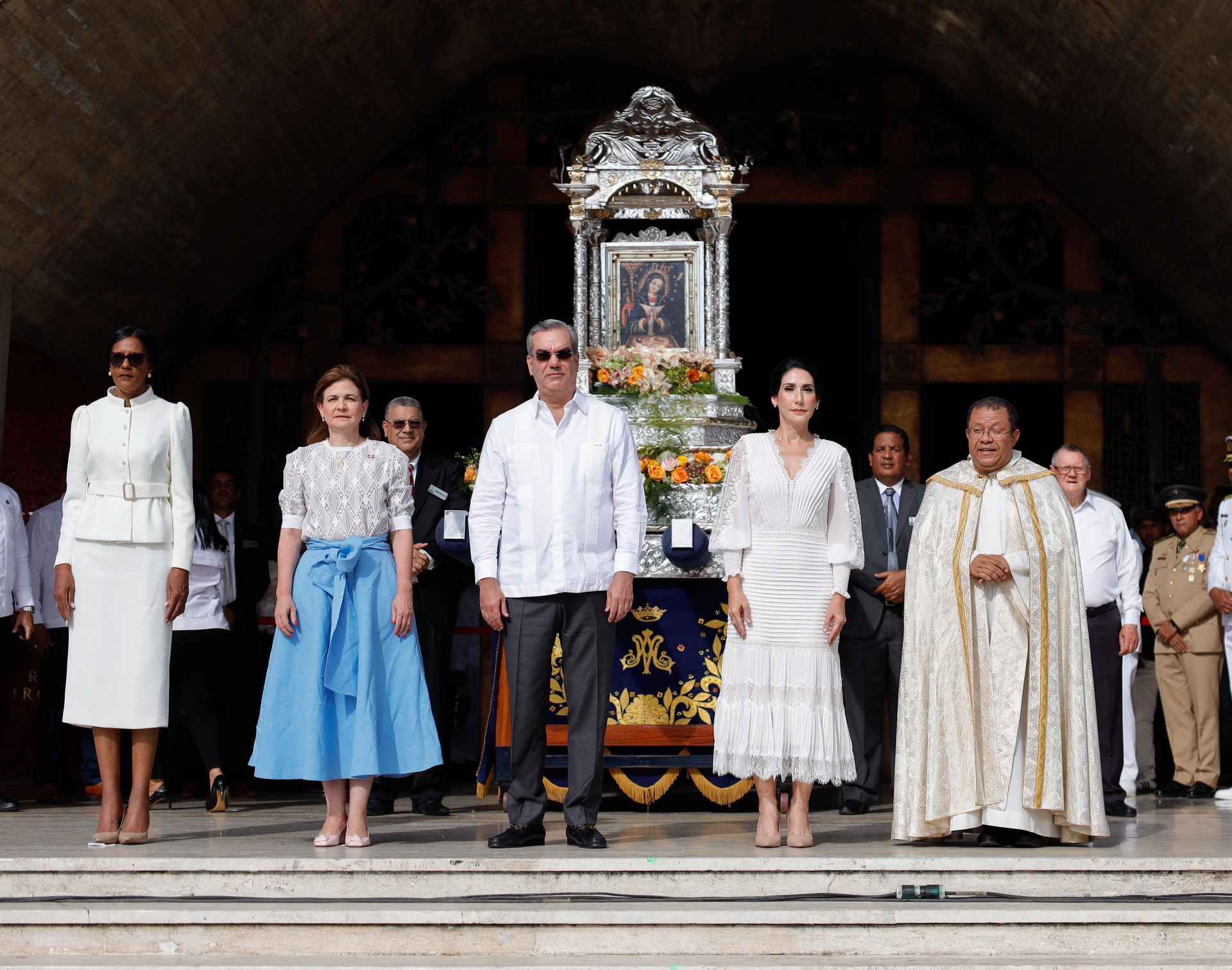 El presidente Luis Abinader, junto a la vicepresidenta Raquel Peña y la primera dama Raquel Arbaje, encabezó la solemne eucaristía con motivo a las festividades del día de Nuestra Señora de la Altagracia en la Basílica Catedral Nuestra Sra. de la Altagracia, en Higüey. Higüey, República Dominicana. 21 de Enero 2024. VP/ Félix Hirujo