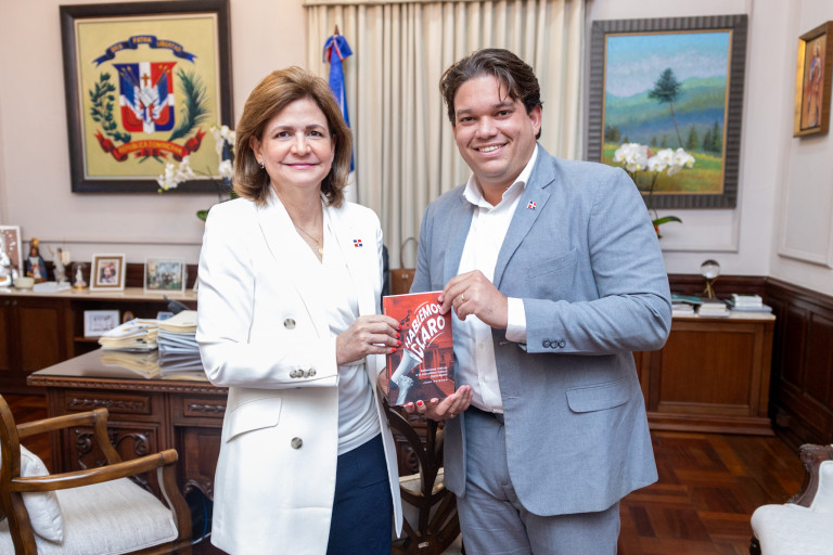 La vicepresidenta Raquel Peña recibió la visita del joven escritor Juan Polanco, autor del libro «Hablemos Claro», obra que recopila sus experiencias en el ámbito político y educativo. Santo Domingo, República Dominicana. 09 de Febrero 2024. VP/ Amehd Gitte