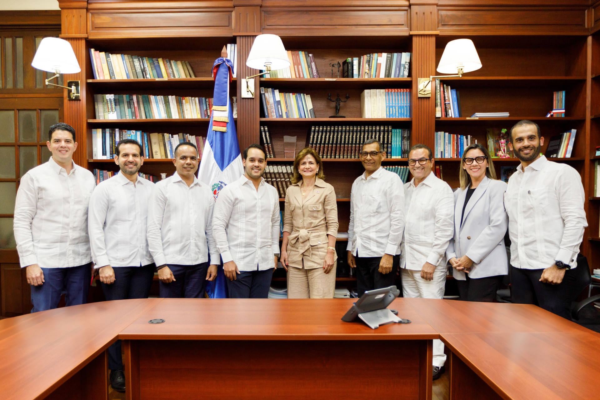 La vicepresidenta Raquel Peña sostuvo un encuentro con el señor Alejandro Fondeur, presidente de la Asociación de Promotores y Constructores de Viviendas del Cibao, y otros ejecutivos de esta entidad, en el que conversaron sobre el avance de las inversiones en el país y el desarrollo inmobiliario. Santo Domingo, República Dominicana. 14 de Febrero 2024. VP/ Amehd Gitte