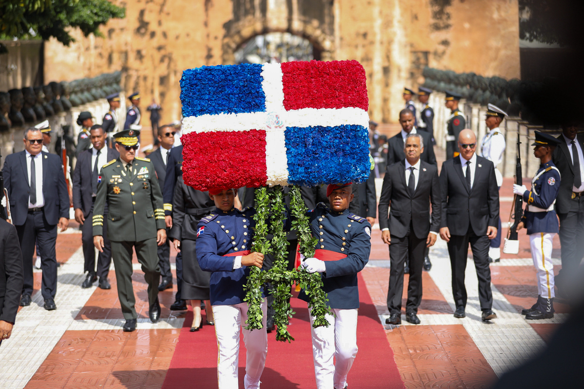 Como parte de las actividades conmemorativas por el Día de la Independencia Nacional, el presidente Luis Abinader, la vicepresidenta Raquel Peña y la primera dama Raquel Arbaje, depositaron una ofrenda floral en el Altar de la Patria, monumento que representa el compromiso, la valentía y el patriotismo de los fundadores de la República Dominicana. Santo Domingo, República Dominicana. 27 de Febrero del 2024. VP/ Sintia Méndez