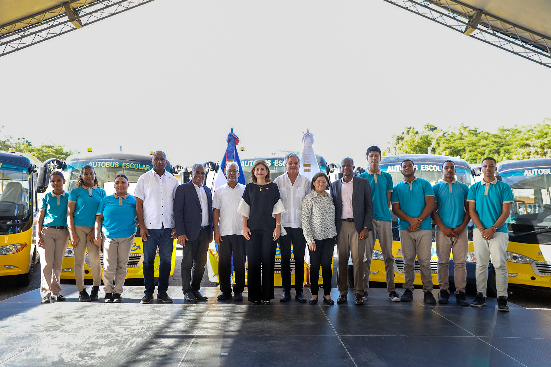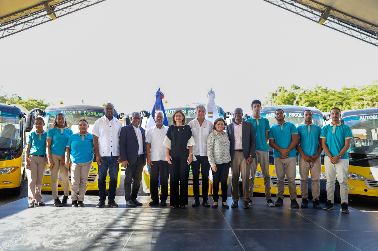 La vicepresidenta Raquel Peña encabezó el acto de lanzamiento del Transporte Estudiantil (TRAE) en Baní, República Dominicana, 18 de Marzo 2024. Vp/ Sintia Mendez