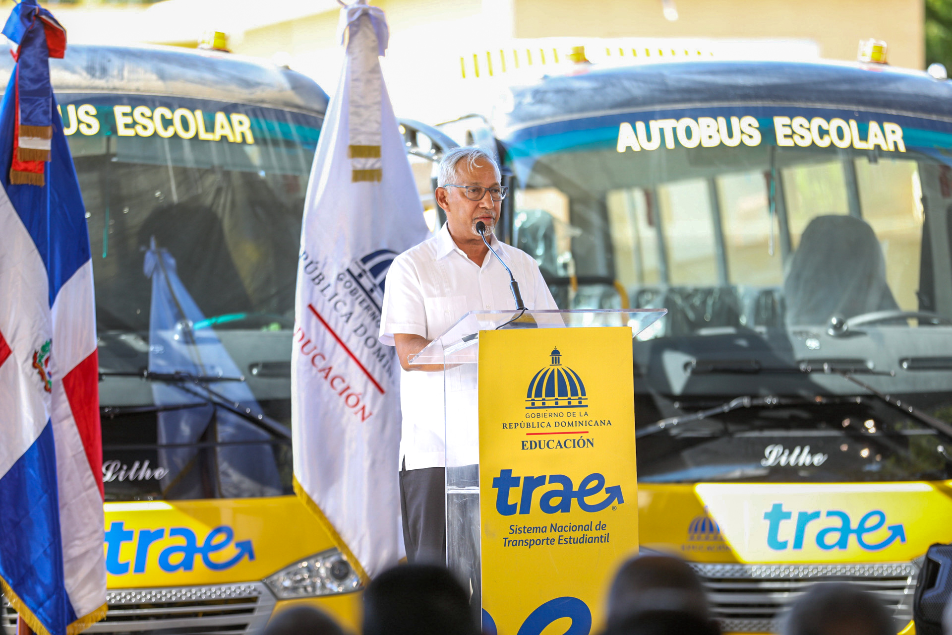 La vicepresidenta Raquel Peña encabezó el acto de lanzamiento del Transporte Estudiantil (TRAE) en Baní, República Dominicana, 18 de Marzo 2024. Vp/ Sintia Mendez