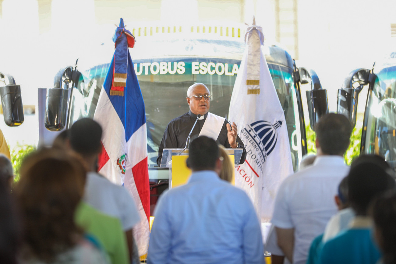 La vicepresidenta Raquel Peña encabezó el acto de lanzamiento del Transporte Estudiantil (TRAE) en Baní, República Dominicana, 18 de Marzo 2024. Vp/ Sintia Mendez