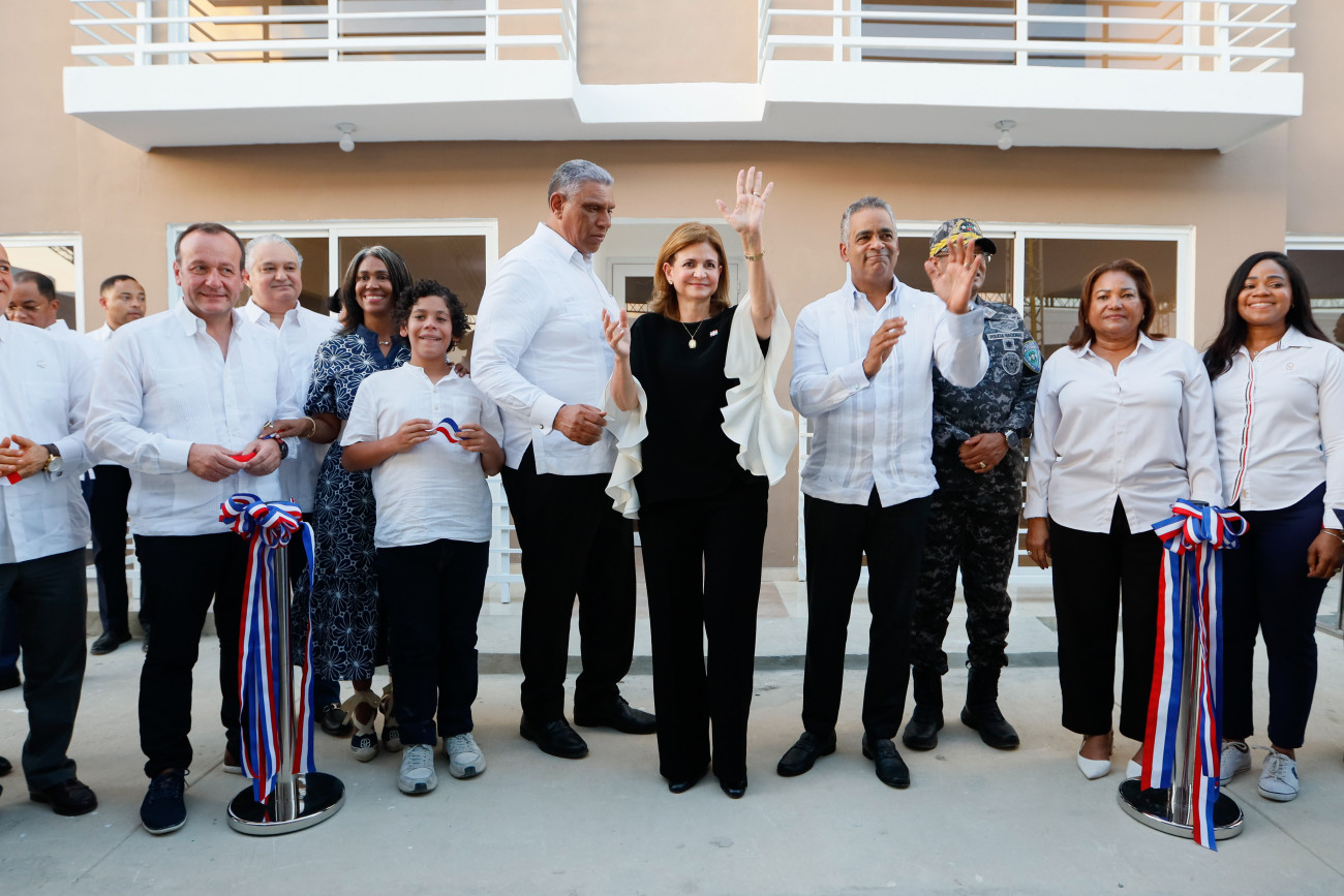 La vicepresidenta Raquel Peña entregó 128 apartamentos del Plan Familia Feliz, en Los Alcarrizos, Santo Domingo Oeste, que serán de gran beneficio para miembros de la Policía Nacional y sus familias. Los Alcarrizos, República Dominicana, 18 de Marzo 2024. Vp/ Felix Hirujo