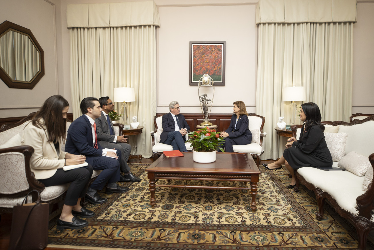 La vicepresidenta Raquel Peña recibió la visita de cortesía del embajador de Su Majestad británica en la República Dominicana, S. E. Mockbul Ali, y el ministro de Exportaciones británico, Lord Malcolm Offord. Santo Domingo, República Dominicana, 03 de Abril 2024. Vp/ Jhon Escalante