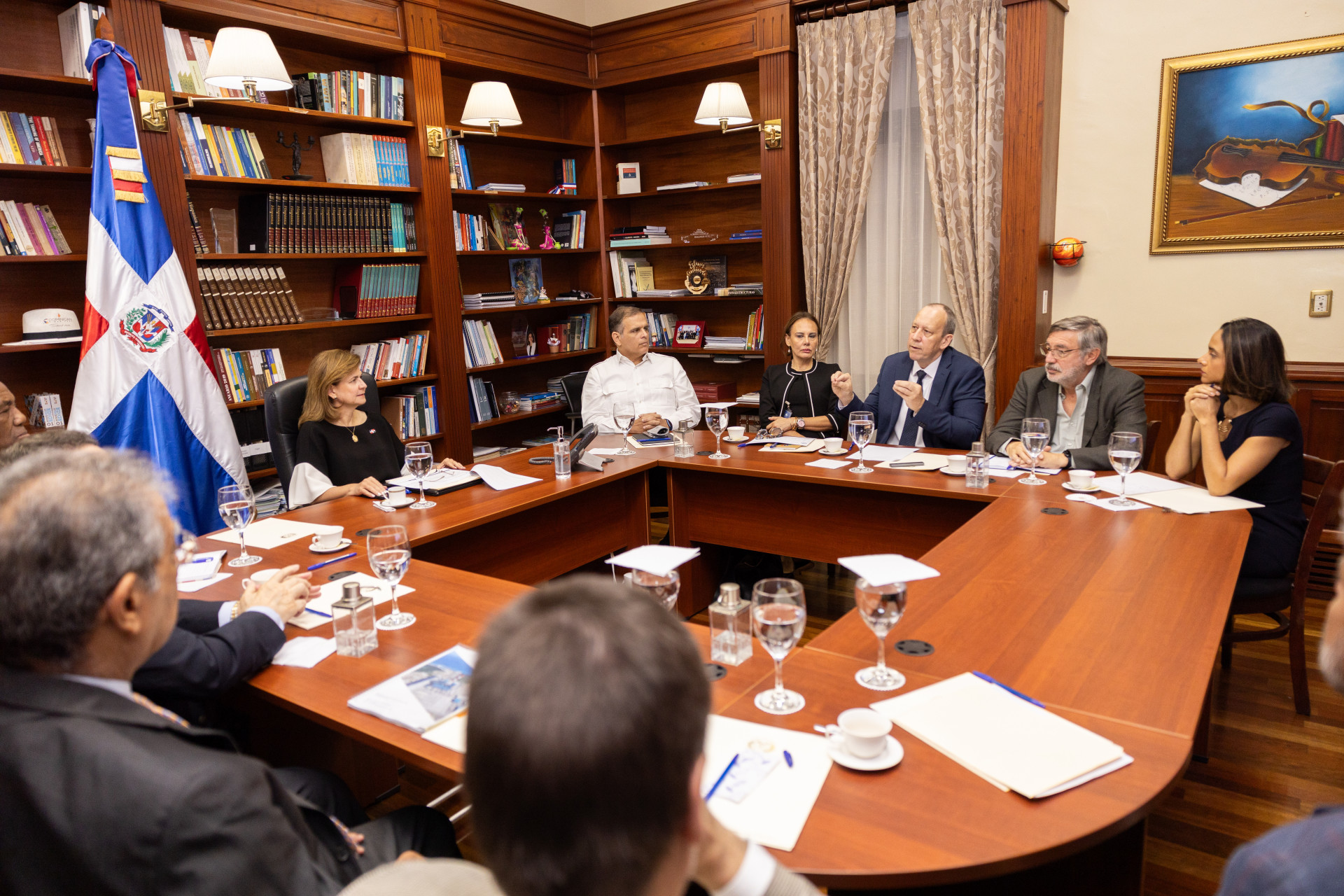 Con el objetivo de conversar sobre proyectos de rehabilitación de la red de distribución energética en el país, la vicepresidenta Raquel Peña estuvo reunida, en calidad de presidenta del Gabinete Eléctrico, con los ministros Antonio Almonte y Jochi Vicente, con el vicepresidente ejecutivo del Gabinete Eléctrico, el Sr. Celso Marranzini, miembros del Consejo Unificado de las Empresas Distribuidoras de Electricidad y ejecutivos del Banco Mundial. Santo Domingo, República Dominicana, 05 de Abril 2024. Vp/ Felix Hirujo