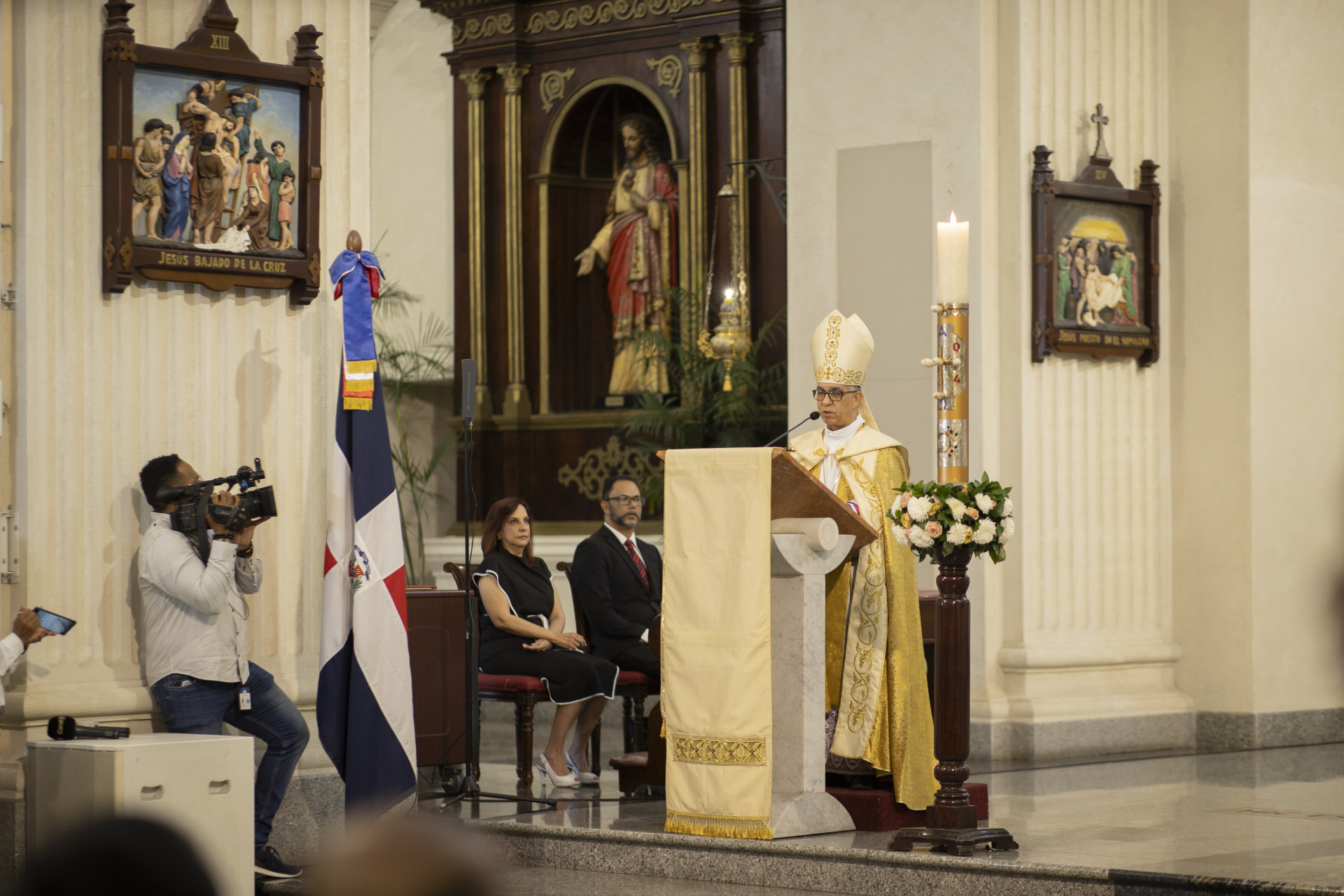 La vicepresidenta Raquel Peña participó en el tradicional tedeum que se realiza en la Catedral Santiago Apóstol, una ceremonia religiosa que hoy conmemora el 180 aniversario de la batalla del 30 de Marzo. Santiago, República Dominicana, 06 de Abril 2024. Vp/ Jhon Escalante