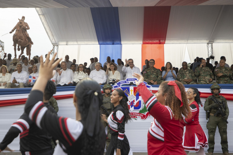 El presidente Luis Abinader, en compañía de la vicepresidenta Raquel Peña, encabezó el desfile cívico-militar con motivo de las actividades conmemorativas del 180 aniversario de la batalla del 30 de Marzo. Santiago, República Dominicana, 06 de Abril 2024. Vp/ Jhon Escalante