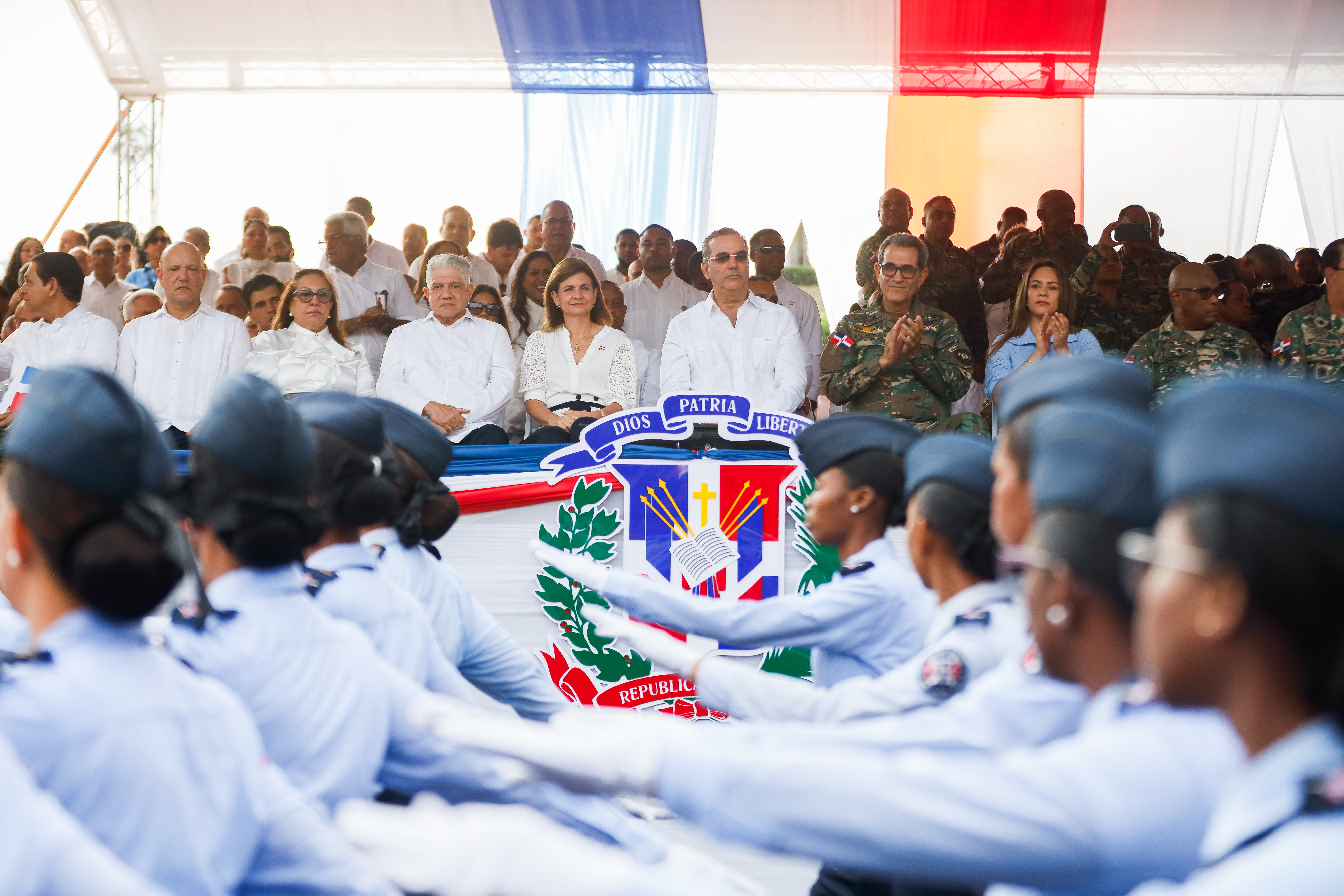 El presidente Luis Abinader, en compañía de la vicepresidenta Raquel Peña, encabezó el desfile cívico-militar con motivo de las actividades conmemorativas del 180 aniversario de la batalla del 30 de Marzo. Santiago, República Dominicana, 06 de Abril 2024. Vp/ Felix Hirujo