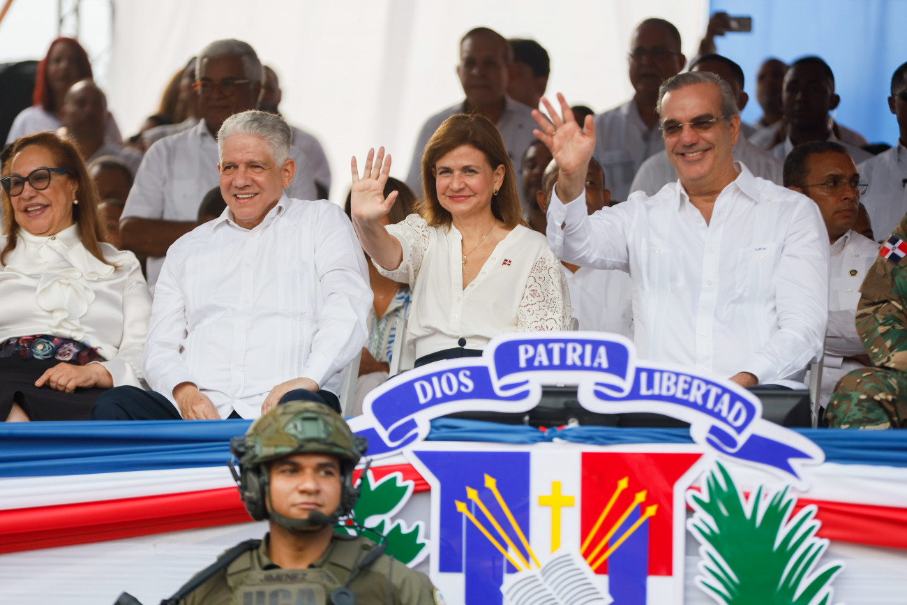 El presidente Luis Abinader, en compañía de la vicepresidenta Raquel Peña, encabezó el desfile cívico-militar con motivo de las actividades conmemorativas del 180 aniversario de la batalla del 30 de Marzo. Santiago, República Dominicana, 06 de Abril 2024. Vp/ Felix Hirujo