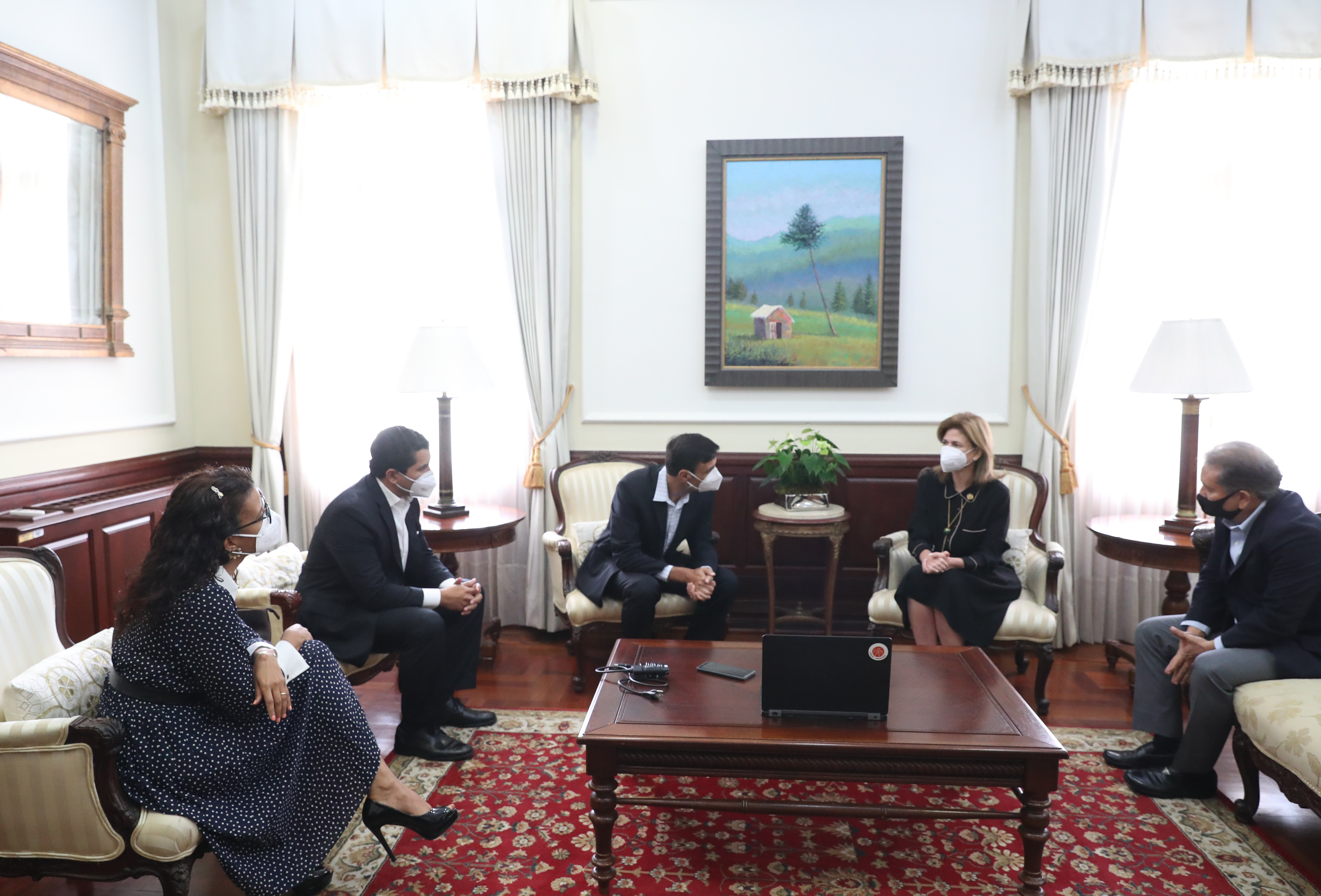 La vicepresidenta Raquel Peña se reúne con el Sr. Luciano Carrillo, CEO de Cervecería Nacional Dominicana, Sr. Johan González, el director Legal de Asuntos Corporativos y el Sr. Jochy Pérez, gerente de Asuntos Gubernamentales de la Cervecería Nacional Dominicana. Despacho de la vicepresidencia, Palacio Nacional.