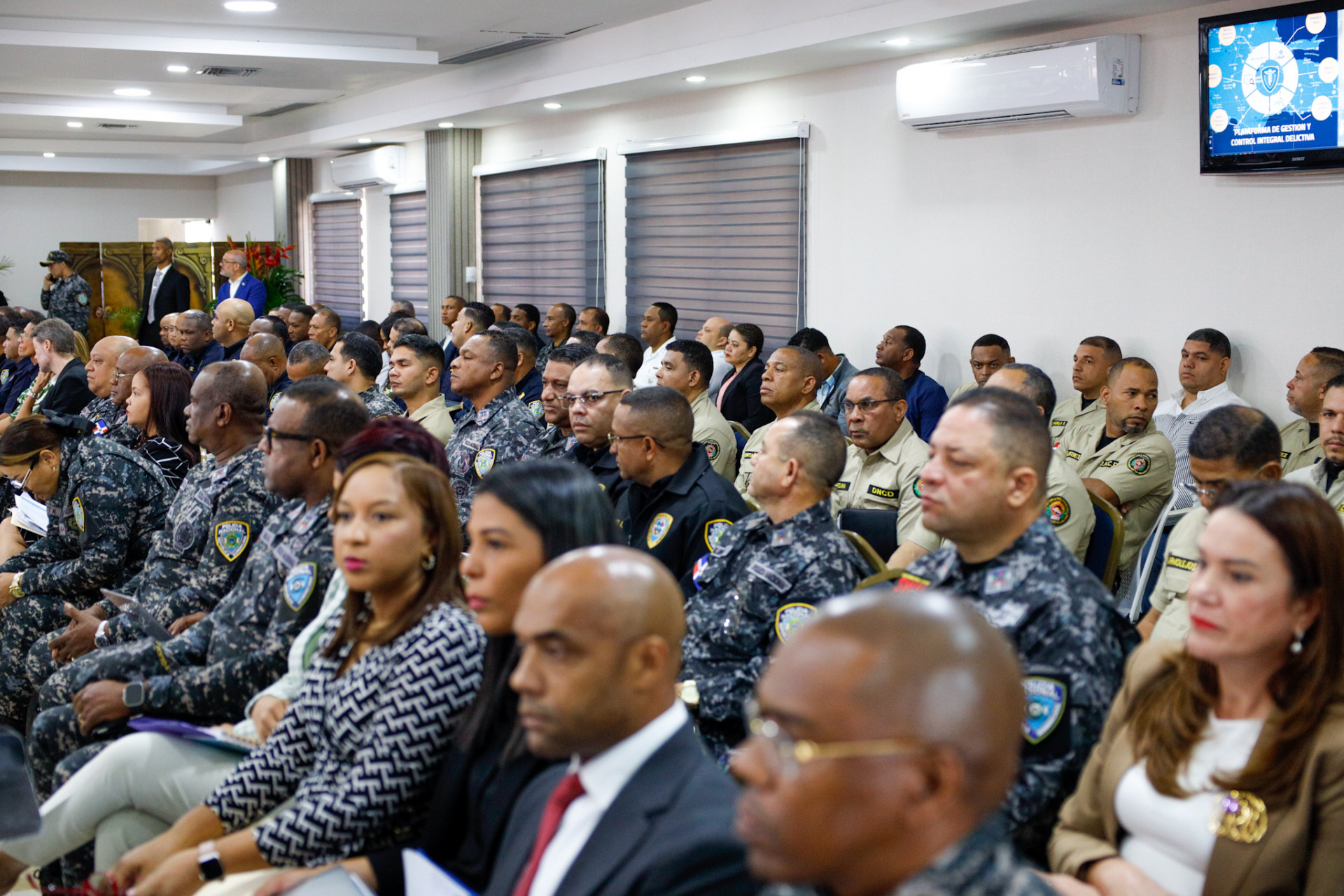 Dando continuidad al desarrollo de acciones que fortalezcan el orden público, la vicepresidenta Raquel Peña encabezó una reunión de seguimiento al Plan de Seguridad Ciudadana, en el Palacio de la Policia Nacional. Santo Domingo, República Dominicana, 22 de Abril 2024. Vp/ Amehd Gitte
