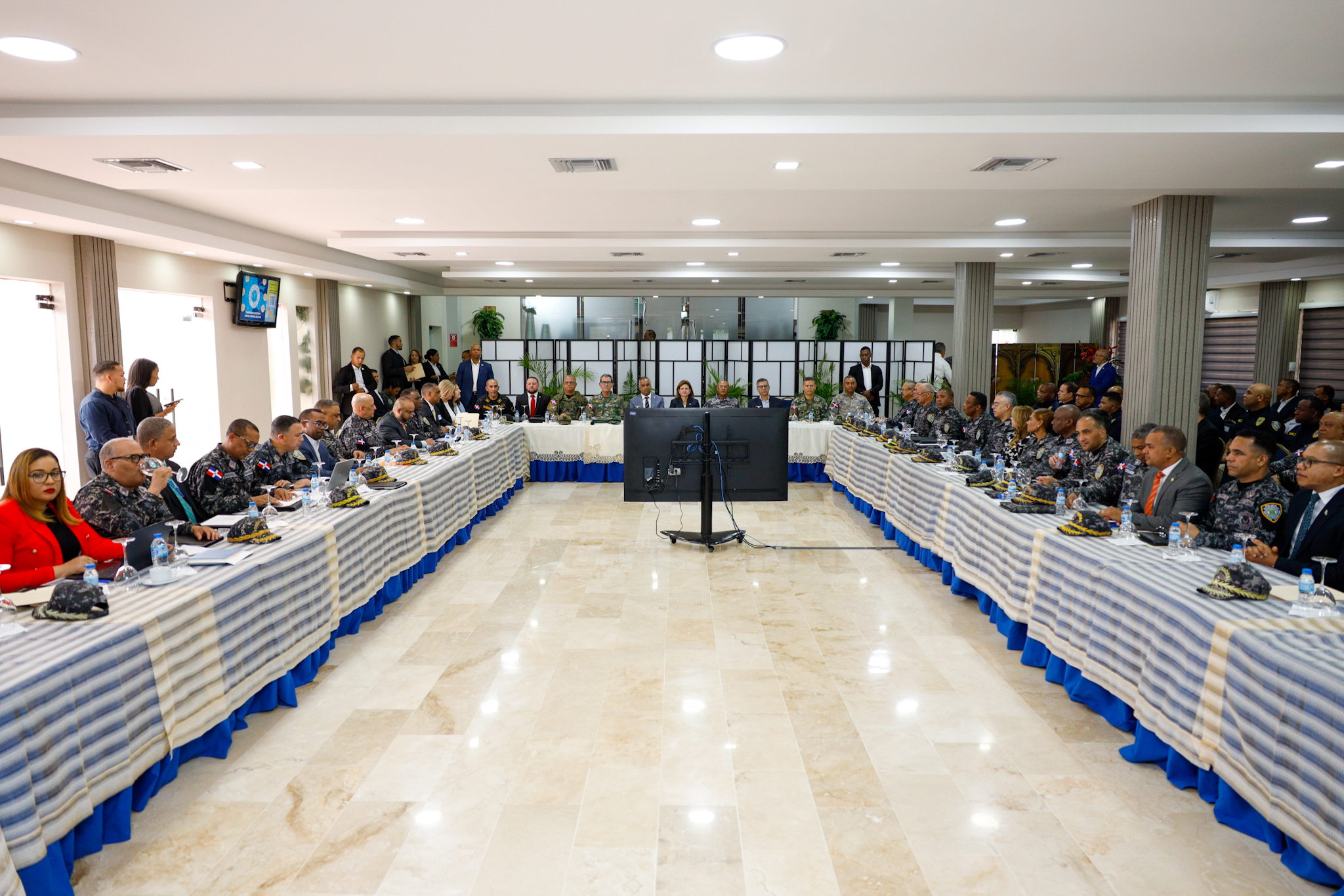 Dando continuidad al desarrollo de acciones que fortalezcan el orden público, la vicepresidenta Raquel Peña encabezó una reunión de seguimiento al Plan de Seguridad Ciudadana, en el Palacio de la Policia Nacional. Santo Domingo, República Dominicana, 22 de Abril 2024. Vp/ Amehd Gitte