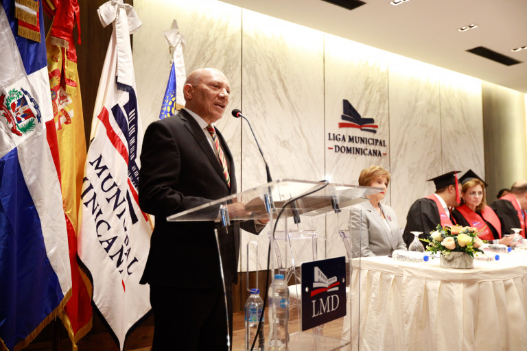 La Liga Municipal Dominicana graduó a 53 profesionales que cursaron la maestría en Derecho Administrativo y Gestión Municipal con la Universidad Castilla-La Mancha, de España, así como a 30 técnicos municipales que concluyeron el diplomado en Desarrollo Territorial y Desarrollo Urbano Sostenible con el Instituto Global. El acto estuvo encabezado por la vicepresidenta Raquel Peña. Santo Domingo, República Dominicana. 30 de Abril del 2024. VP/ Amehd Gitte