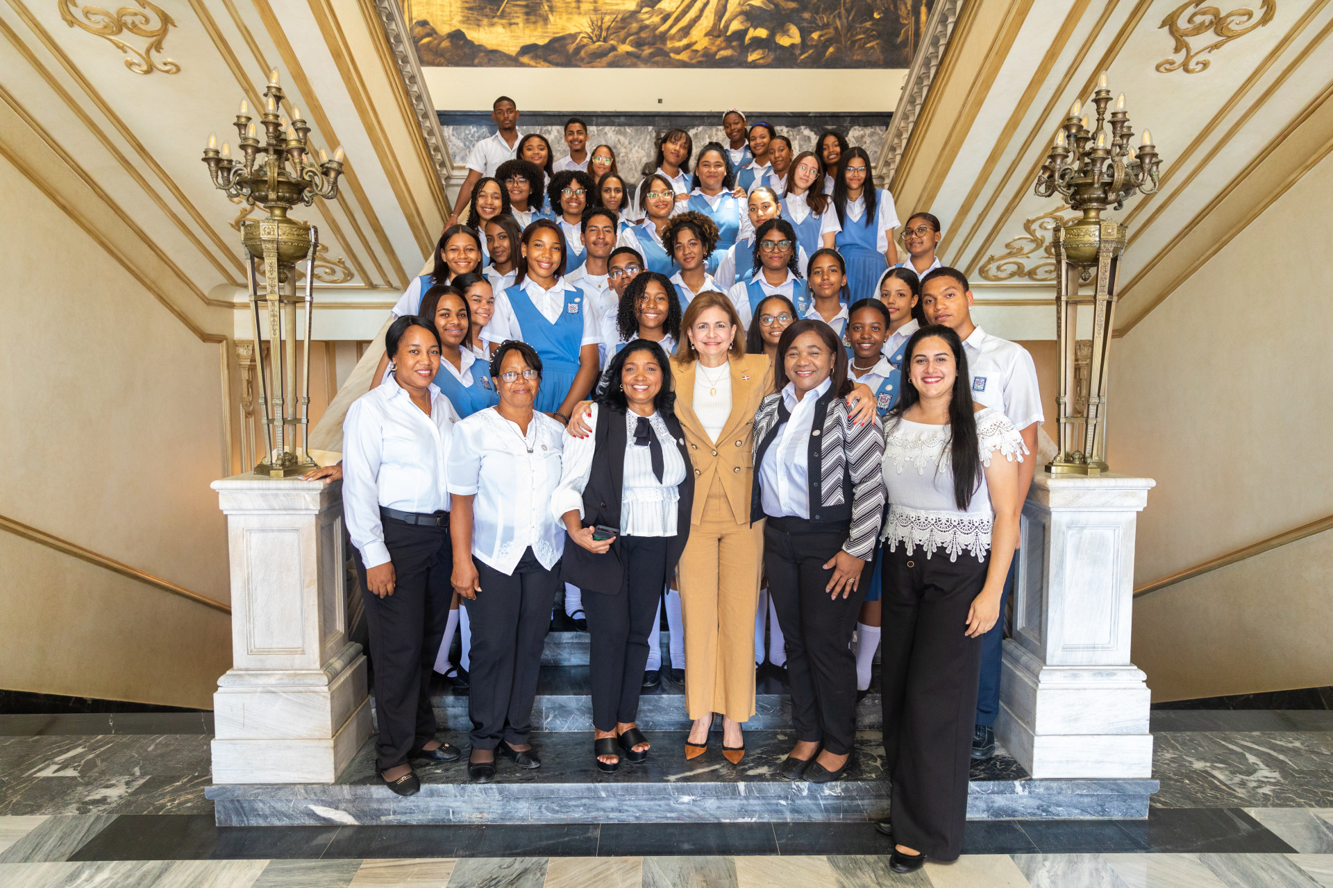 La vicepresidenta Raquel Peña tuvo un encuentro con estudiantes y maestros del Colegio Evangélico Miguel Limardo, en el Palacio Nacional. Santo Domingo, República Dominicana, 06 de Mayo 2024. Vp/ Pedro Rodriguez