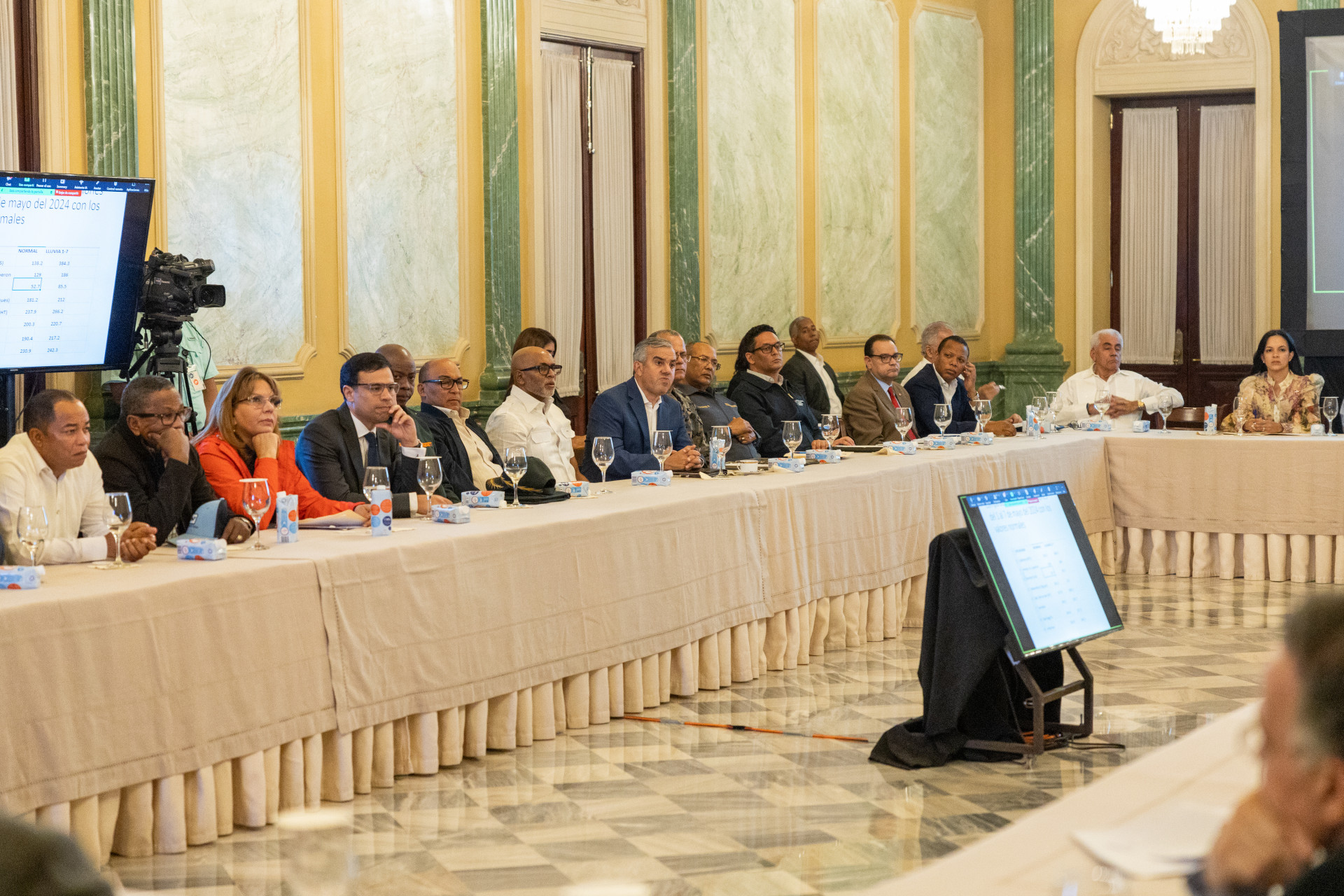 El presidente Luis Abinader, en compañía de la vicepresidenta Raquel Peña, encabezó una reunión con representantes de los organismos de socorro y entidades relacionadas para evaluar acciones que permitan hacer frente a la situación climática actual. Santo Domingo, República Dominicana, 09 de Mayo 2024. Vp/ Felix Hirujo