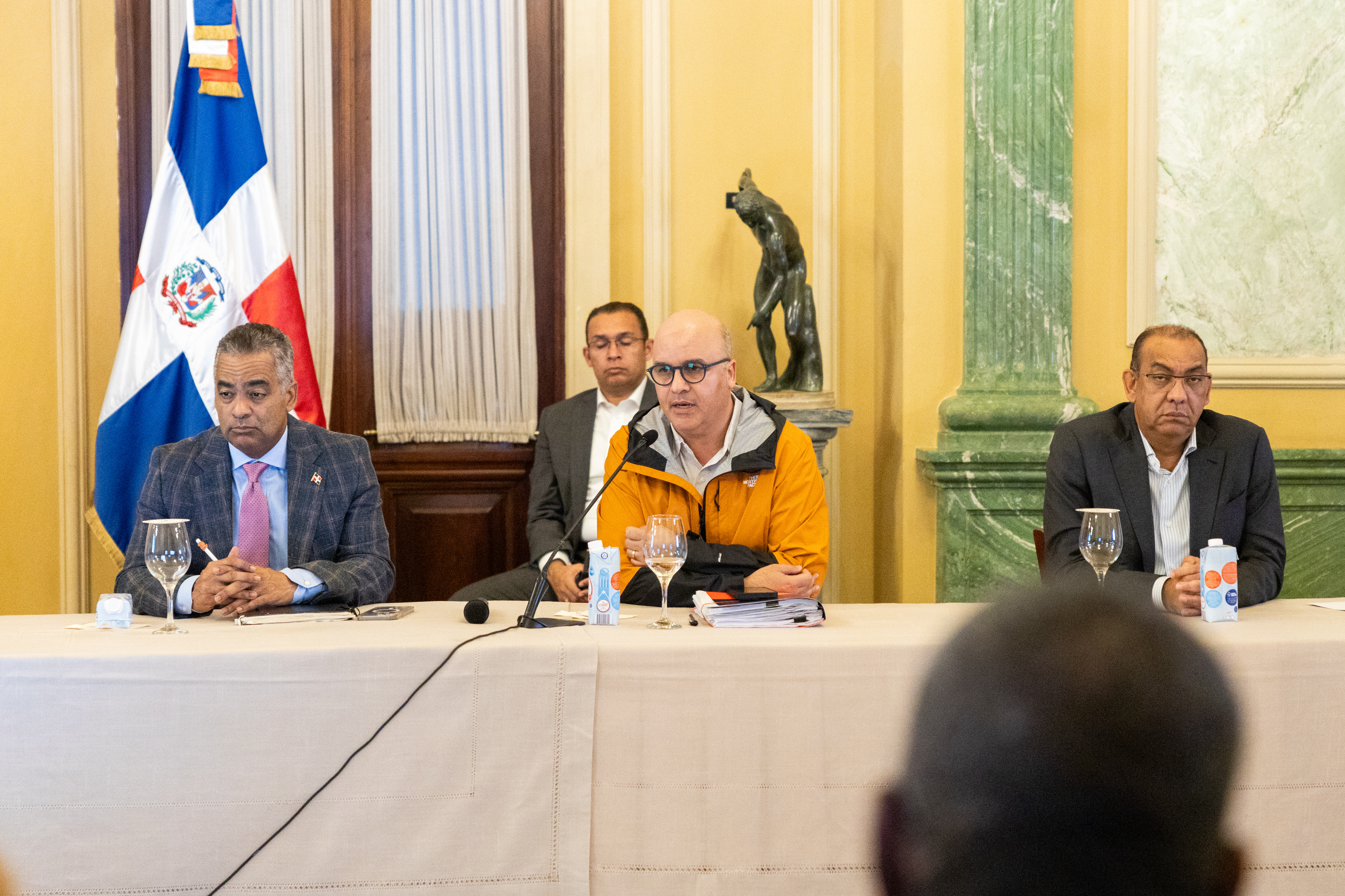 El presidente Luis Abinader, en compañía de la vicepresidenta Raquel Peña, encabezó una reunión con representantes de los organismos de socorro y entidades relacionadas para evaluar acciones que permitan hacer frente a la situación climática actual. Santo Domingo, República Dominicana, 09 de Mayo 2024. Vp/ Felix Hirujo