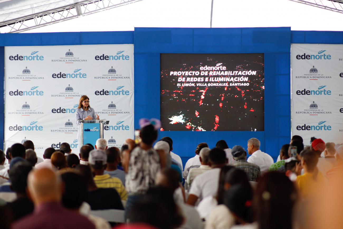 La vicepresidenta Raquel Peña inauguró el Proyecto de Rehabilitación de Redes e Iluminación, El Limón, Villa González, Santiago. Santiago, República Dominicana. 25 de Mayo del 2024. VP/ Amehd Gitte