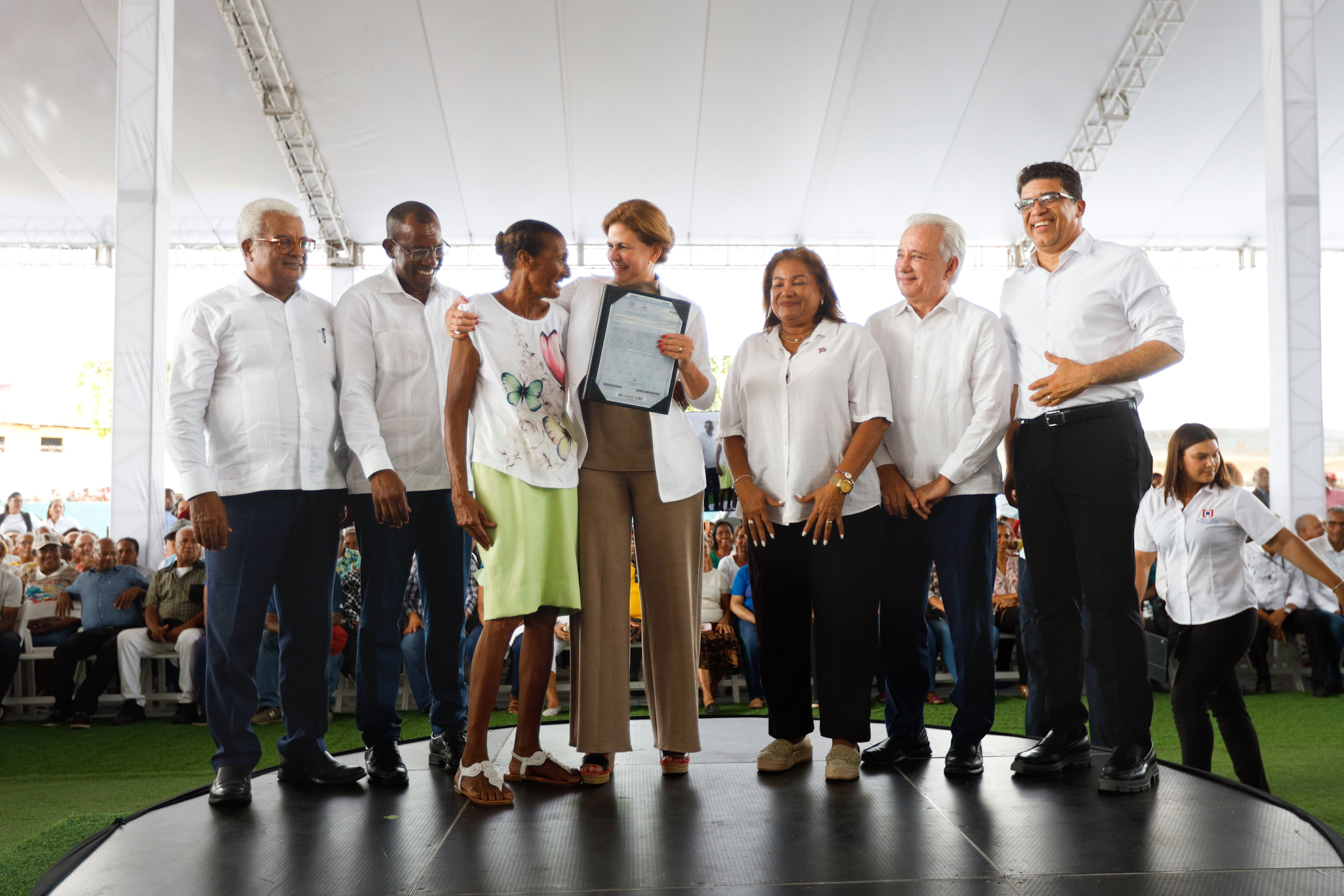 La vicepresidenta Raquel Peña encabezó la entrega de certificados de títulos de propiedad de viviendas y solares a familias de Cancino, en Santo Domingo Este. Santo Domingo, República Dominicana. 02 de Junio del 2024. VP/ Amehd Gitte