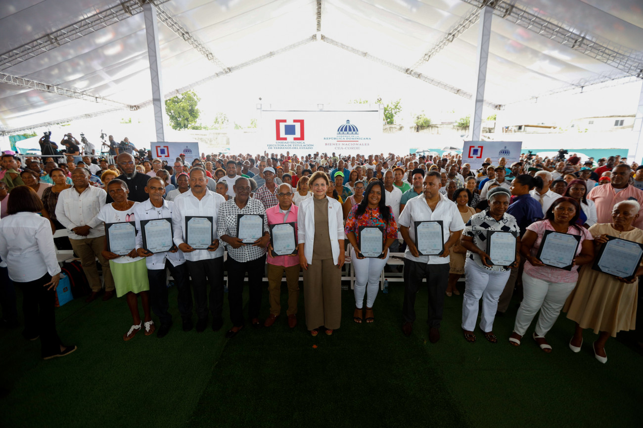 La vicepresidenta Raquel Peña encabezó la entrega de certificados de títulos de propiedad de viviendas y solares a familias de Cancino, en Santo Domingo Este. Santo Domingo, República Dominicana. 02 de Junio del 2024. VP/ Amehd Gitte