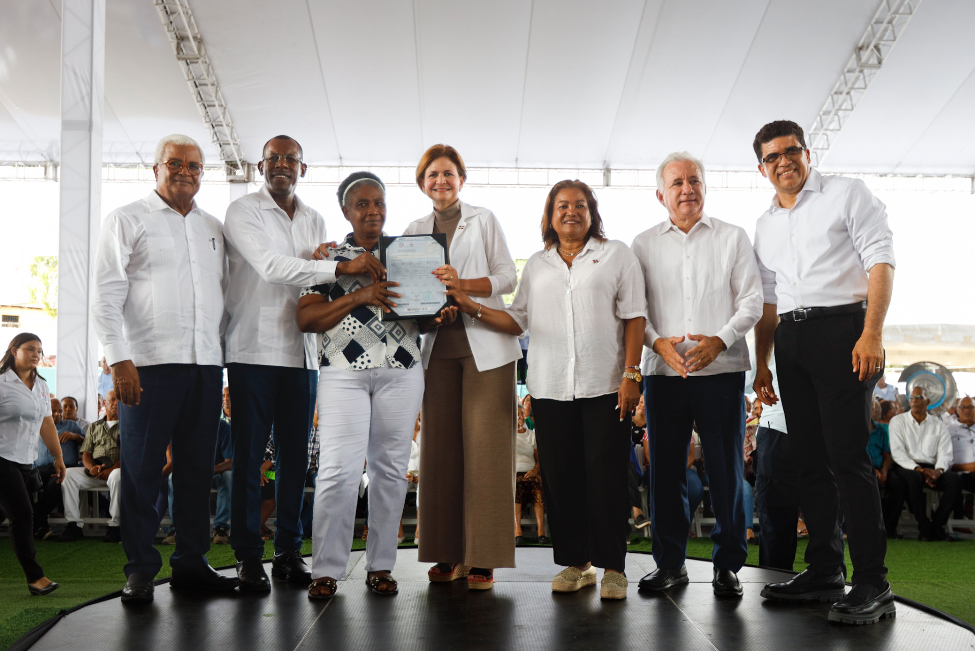 La vicepresidenta Raquel Peña encabezó la entrega de certificados de títulos de propiedad de viviendas y solares a familias de Cancino, en Santo Domingo Este. Santo Domingo, República Dominicana. 02 de Junio del 2024. VP/ Amehd Gitte