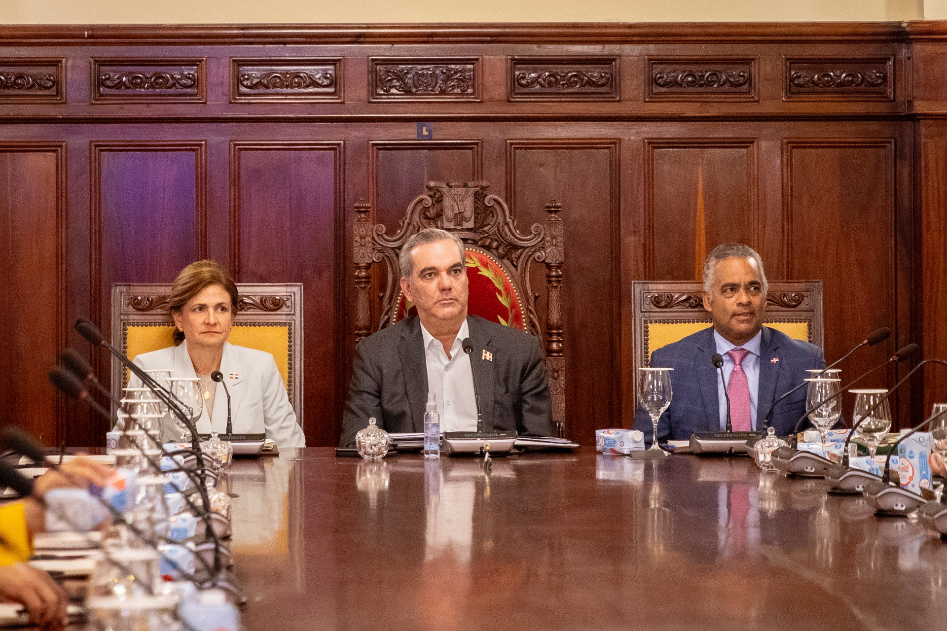 El presidente Luis Abinader, junto a la vicepresidenta Raquel Peña