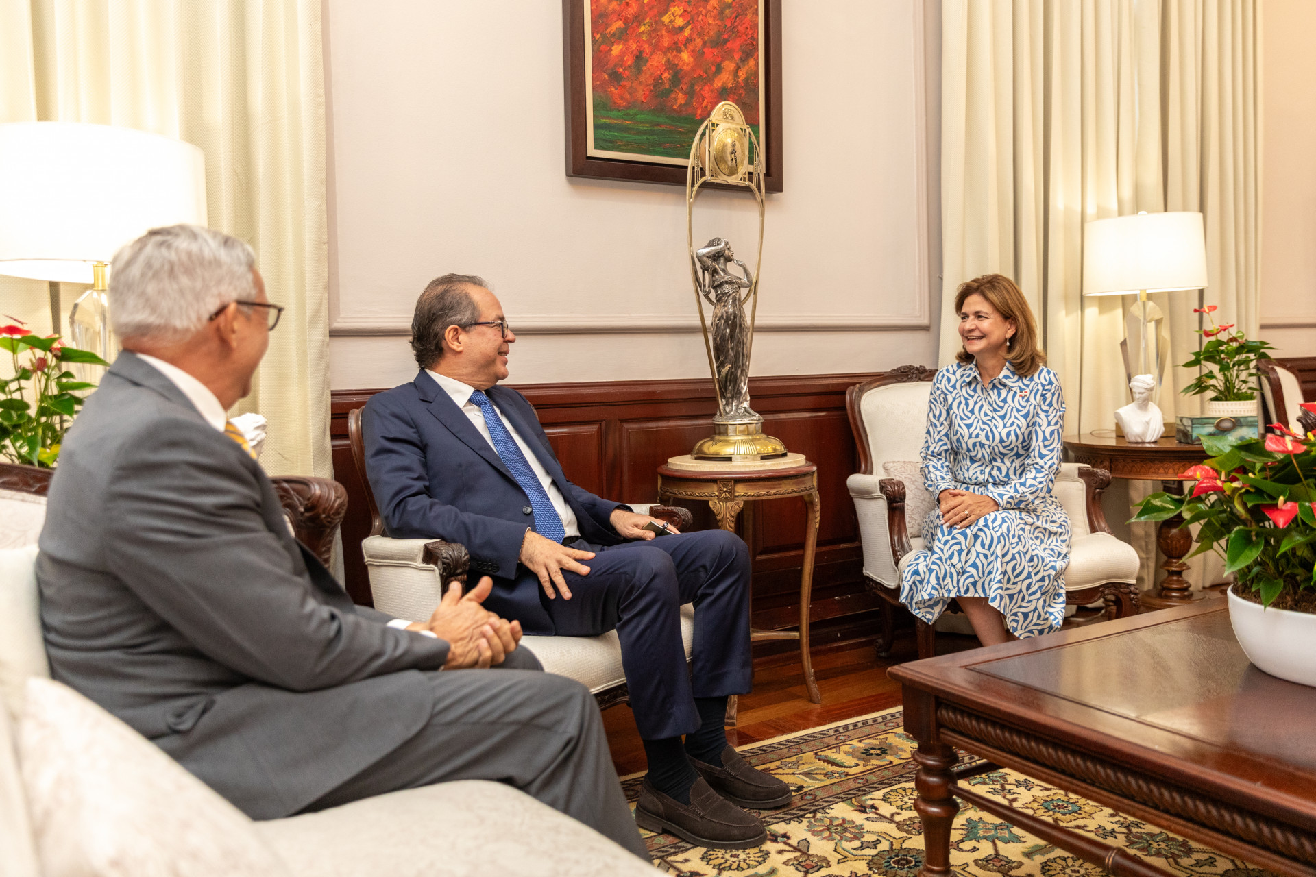La vicepresidenta Raquel Peña sostuvo una reunión con el señor Juan Mera y el señor Cristian Reyna, presidente ejecutivo del Banco de Ahorro y Crédito FONDESA, S. A. Santo Domingo, República Dominicana, 13 de Junio 2024. Vp/ Pedro Rodriguez