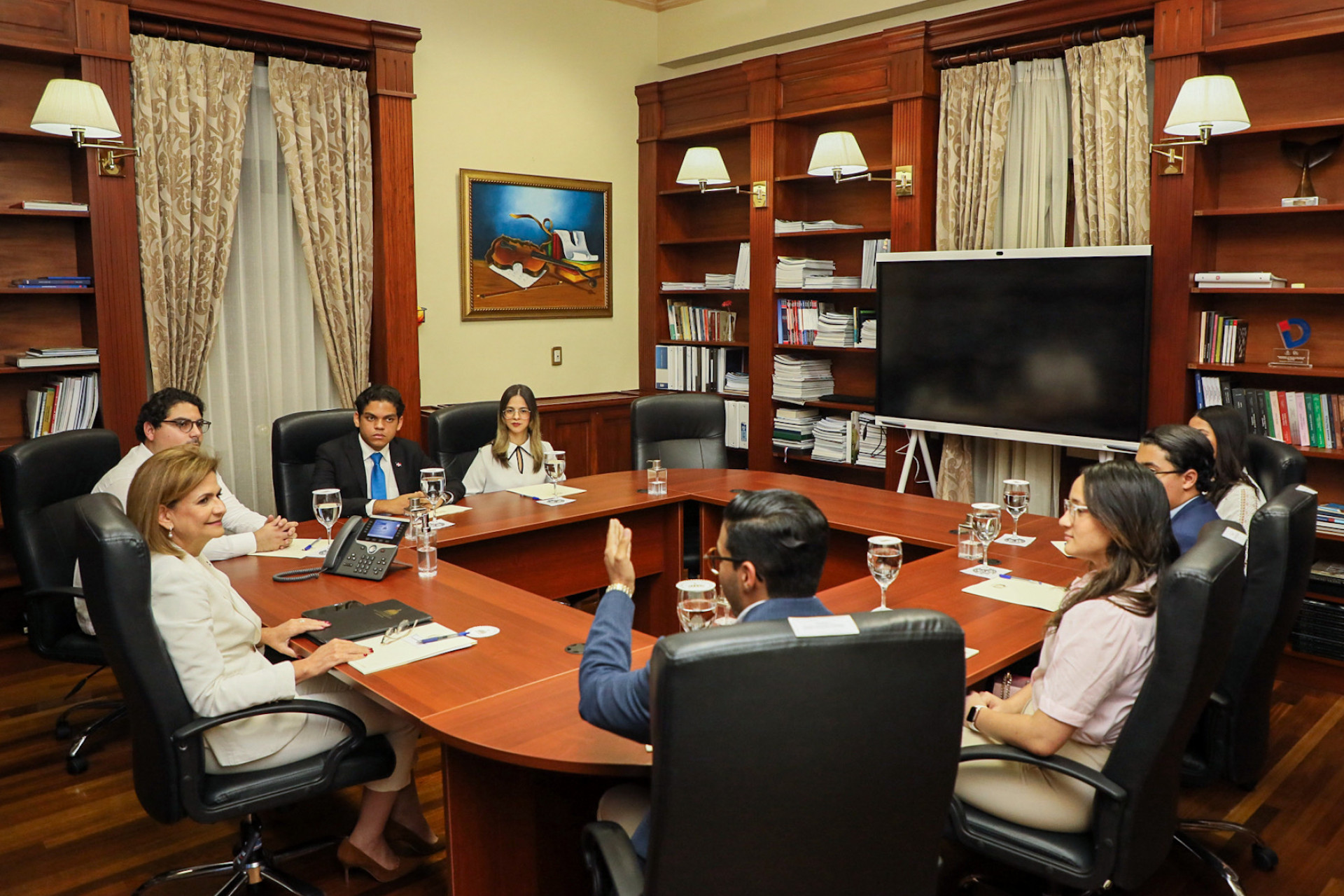Con el objetivo de intercambiar ideas que contribuyan a fomentar el diálogo y a aumentar la participación juvenil del país, la vicepresidenta Raquel Peña sostuvo un encuentro con los miembros del Club de Ideas Politíticas de la PUCMM. Felicitamos a estos jóvenes por su compromiso e integración activa en estas iniciativas, fundamentales para impulsar el desarrollo de la nación. Santo Domingo, República Dominicana, 20 de Junio 2024. Vp/ Sintia Mendez