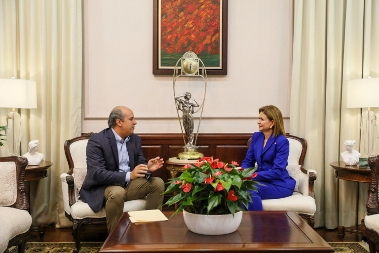 La vicepresidenta Raquel Peña recibió la visita de cortesía del embajador José Blanco, representante permanente de la República Dominicana ante las Naciones Unidas. Durante el encuentro, discutieron temas de interés común. Santo Domingo, República Dominicana, 21 de Junio 2024. Vp/ Sintia Mendez