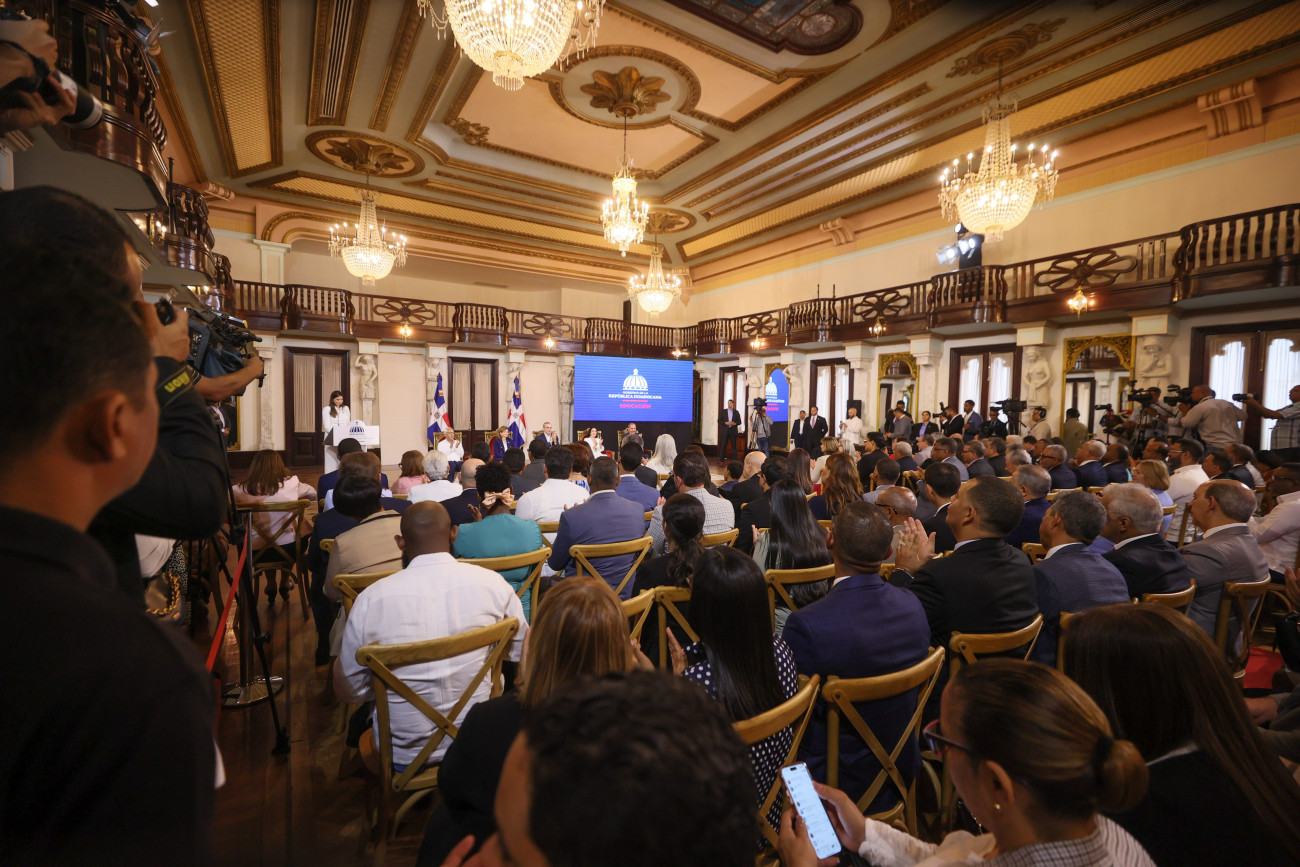 El presidente Luis Abinader, en compañía de la vicepresidenta Raquel Peña y la primera dama Raquel Arbaje, hizo entrega del «Premio a la Excelencia Magisterial 2024», en cuyo acto se destacó la trayectoria, el compromiso, los aportes y los logros académicos de estos docentes. Santo Domingo, República Dominicana, 2 de Julio 2024. Vp/ Felix Hirujo