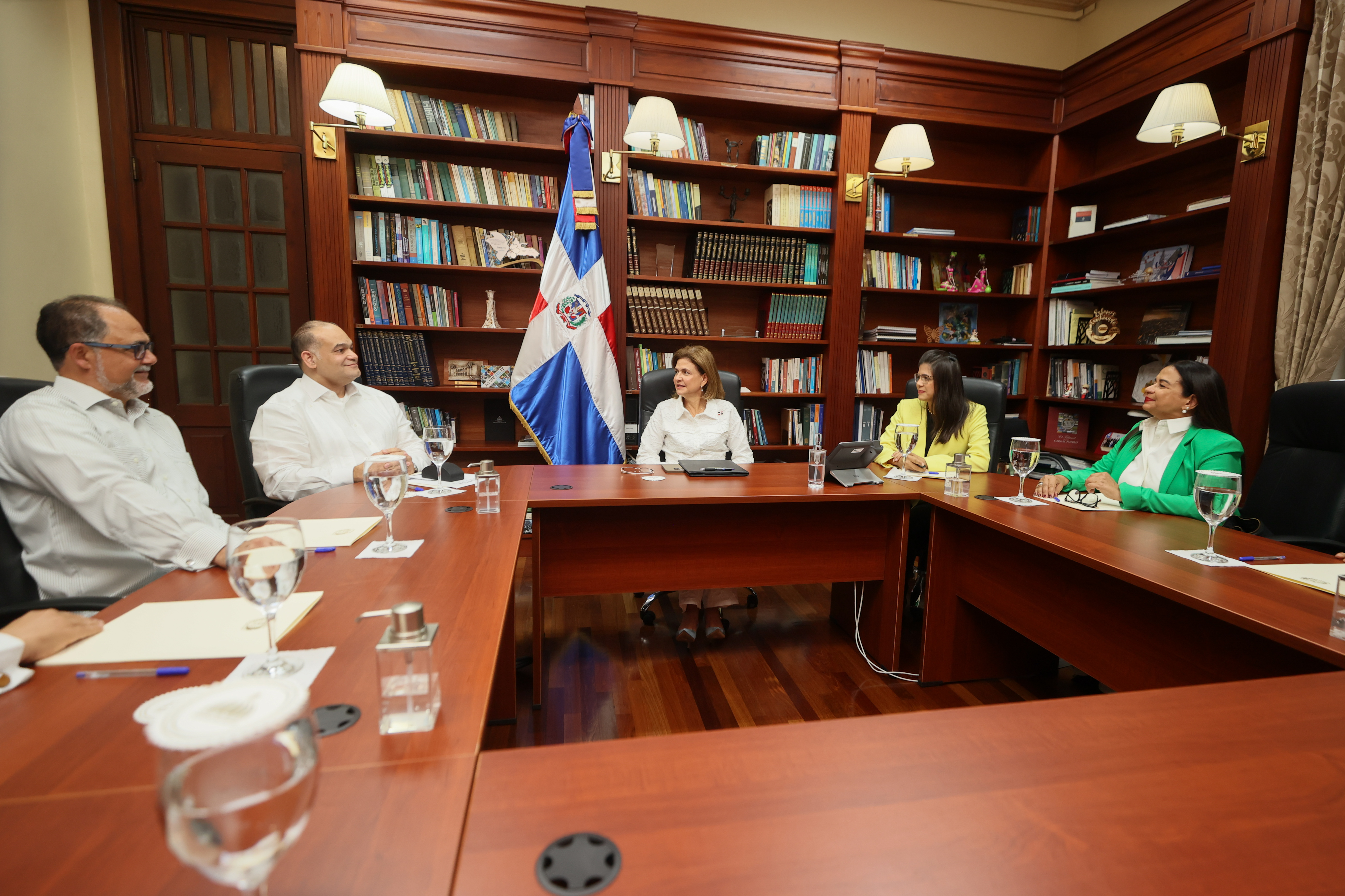 Con el propósito de intercambiar ideas acerca del desarrollo del comercio, la vicepresidenta Raquel Peña se reunió con la señora Elvira Garrido, vicepresidenta de la Unión Gastronómica de Santiago (Ugasa) y otros miembros de esta asociación sin fines de lucro que reúne y organiza el sector gastronómico de la región. Santo Domingo, República Dominicana, 4 de Julio 2024. Vp/ Felix Hirujo
