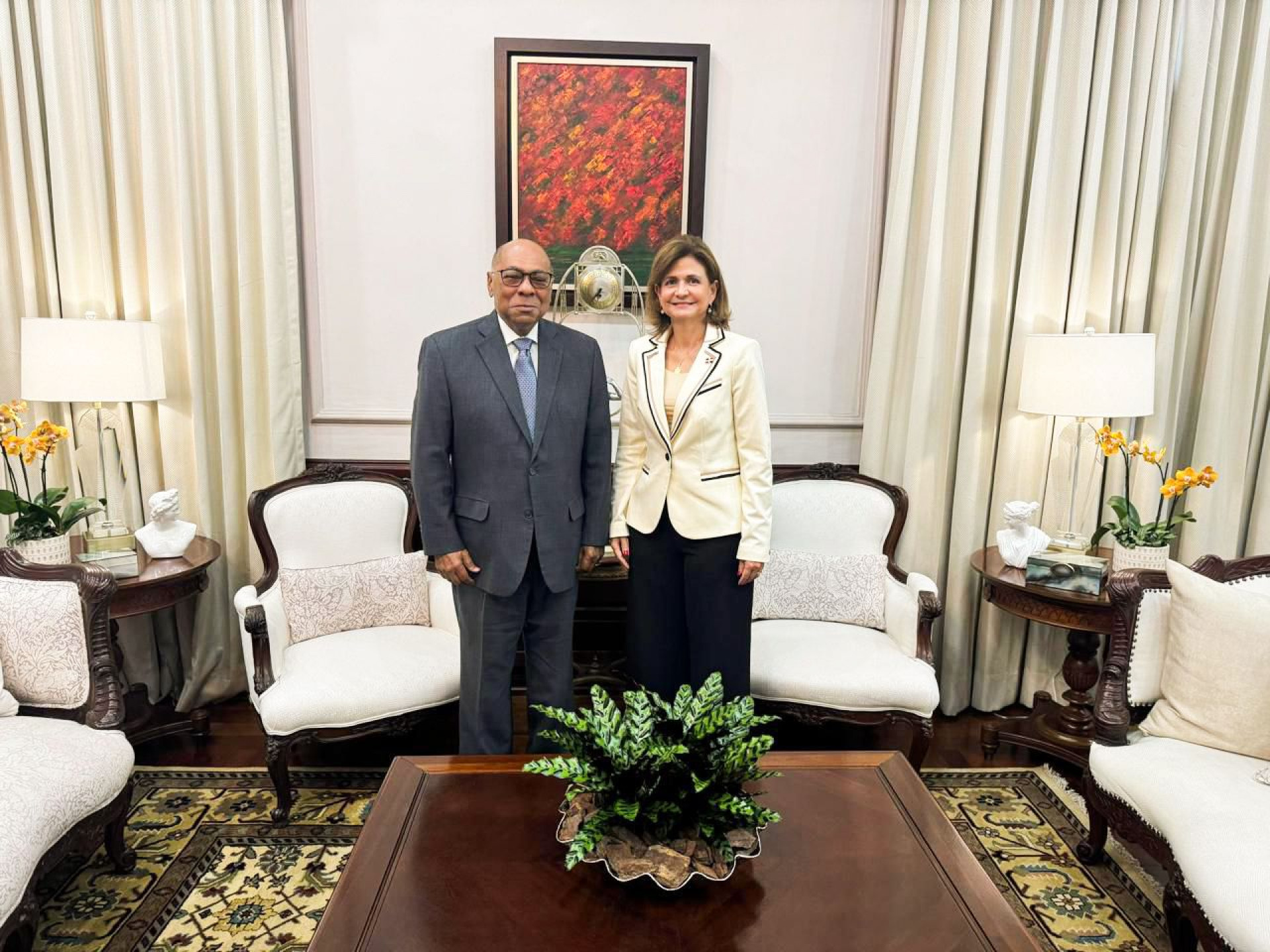Durante su agenda de trabajo, la vicepresidenta Raquel Peña sostuvo un encuentro con el expresidente del Tribunal Constitucional, el Dr. Milton Ray Guevara, con quien conversó sobre diversos temas de interés, referentes al impulso de iniciativas que potencien el desarrollo del país. Santo Domingo, República Dominicana, 8 de Julio 2024. Vp/ Fuente Externa