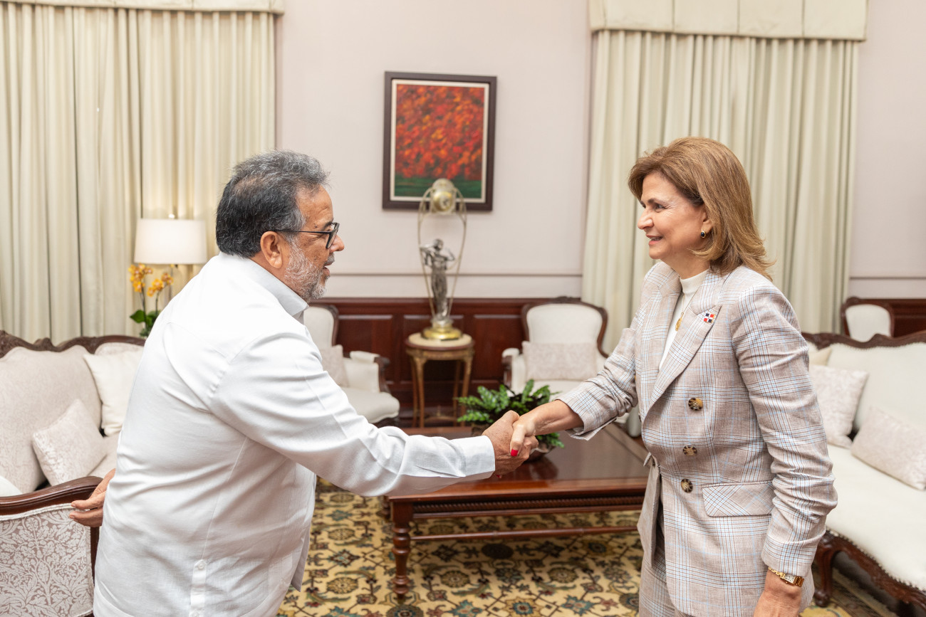 La vicepresidenta Raquel Peña sostuvo una reunión con el señor Williams Lantigua, presidente de la Cooperativa Nacional de Ahorros, Créditos y Servicios Múltiples de Comerciantes (Coopnacomer), quien asistió en compañía de la señora María Josefina Collado y el señor Carlos Rosario Luís, representantes de esta entidad. Durante el encuentro, trataron varios puntos sobre el ámbito comercial. Santo Domingo, República Dominicana, 9 de Julio 2024. Vp/ Pedro Rodriguez