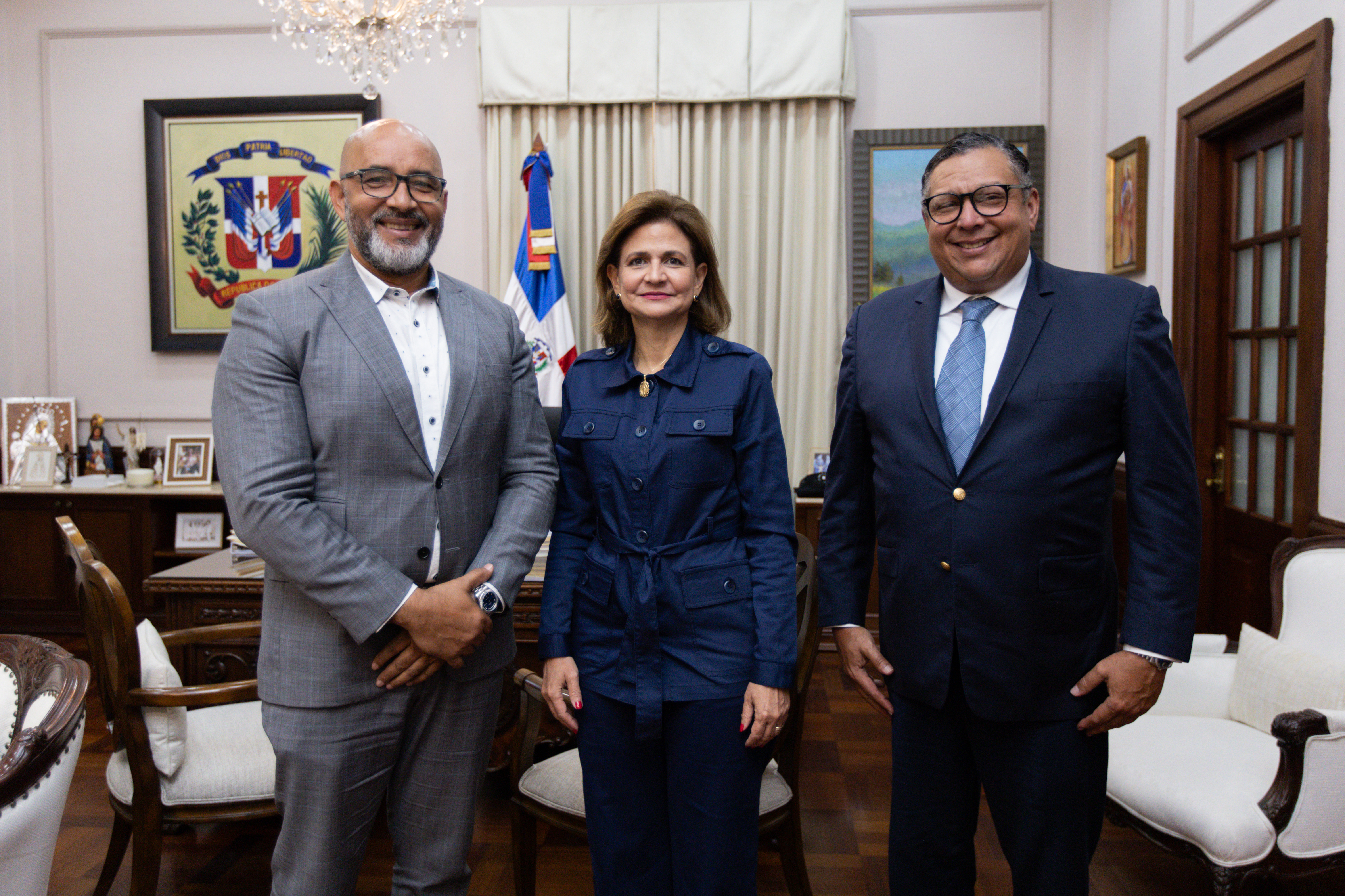 La vicepresidenta Raquel Peña recibió la visita de cortesía de los señores Bernardo Frías Peña y Rafael De Marchena Espada. Santo Domingo, República Dominicana, 10 de Julio 2024. Vp/ Amehd Gitte