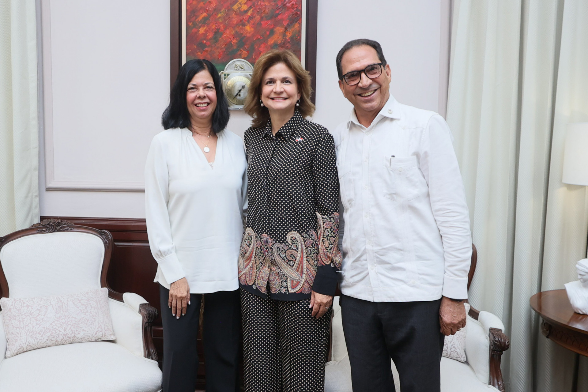Como parte de su agenda ordinaria, la vicepresidenta Raquel Peña sostuvo un encuentro con el director de la Unidad de Gestión de Agua de la PUCMM, el Sr. Silvio Ignacio Carrasco Rodríguez, y la Sra. Juana Adames de Carrasco, para dialogar sobre temas relacionados con este recurso natural. Santo Domingo, República Dominicana, 12 de Julio 2024. Vp/ Felix Hirujo