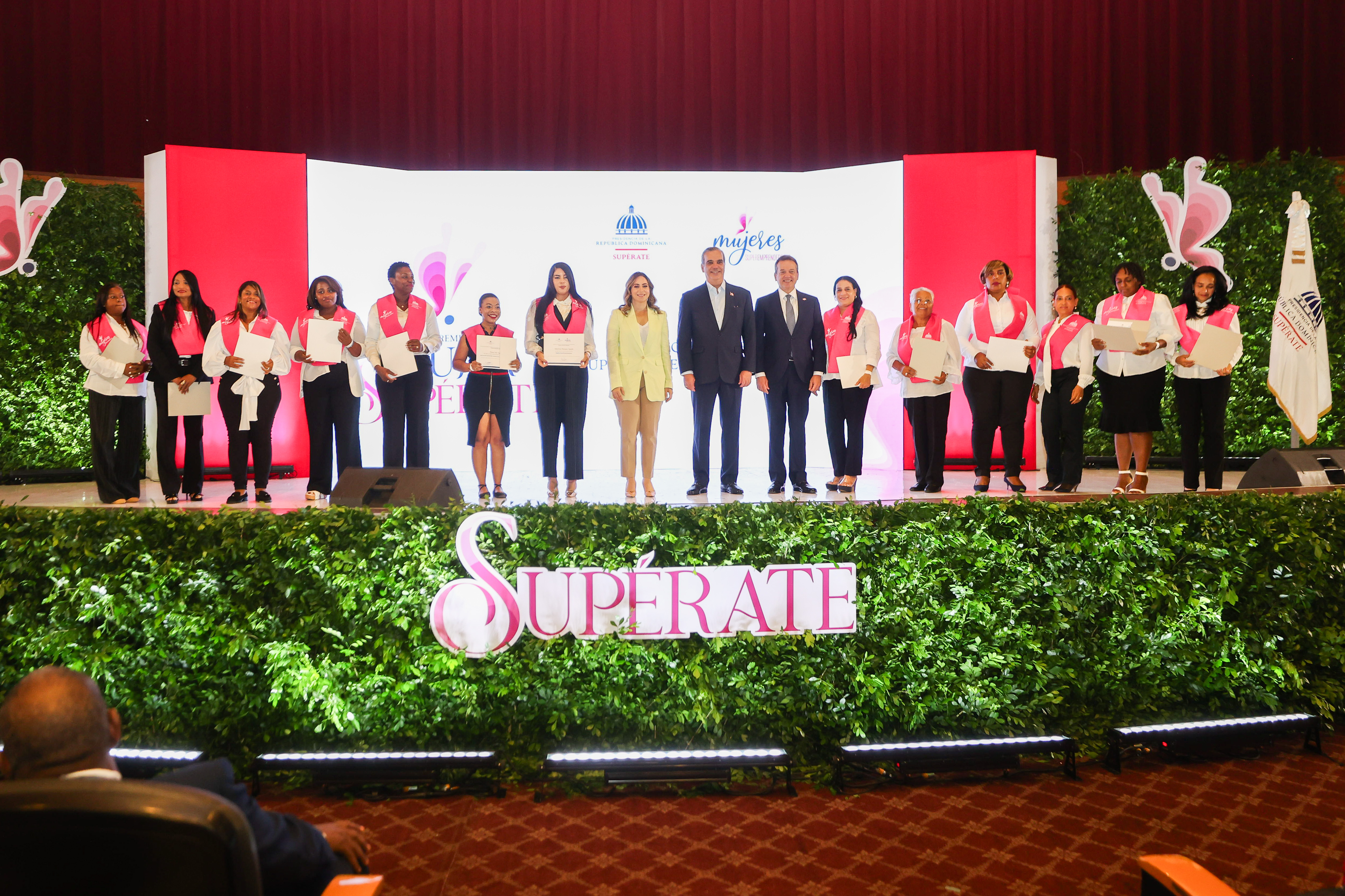 El presidente Luis Abinader, en compañía de la vicepresidenta Raquel Peña, entregó el premio «Mujer Supérate» y encabezó el acto de graduación de la iniciativa «Mujeres Súper Emprendedoras», ejecutada por el programa Supérate. Santo Domingo, República Dominicana. 18 de Julio del 2024. VP/ Félix Hirujo