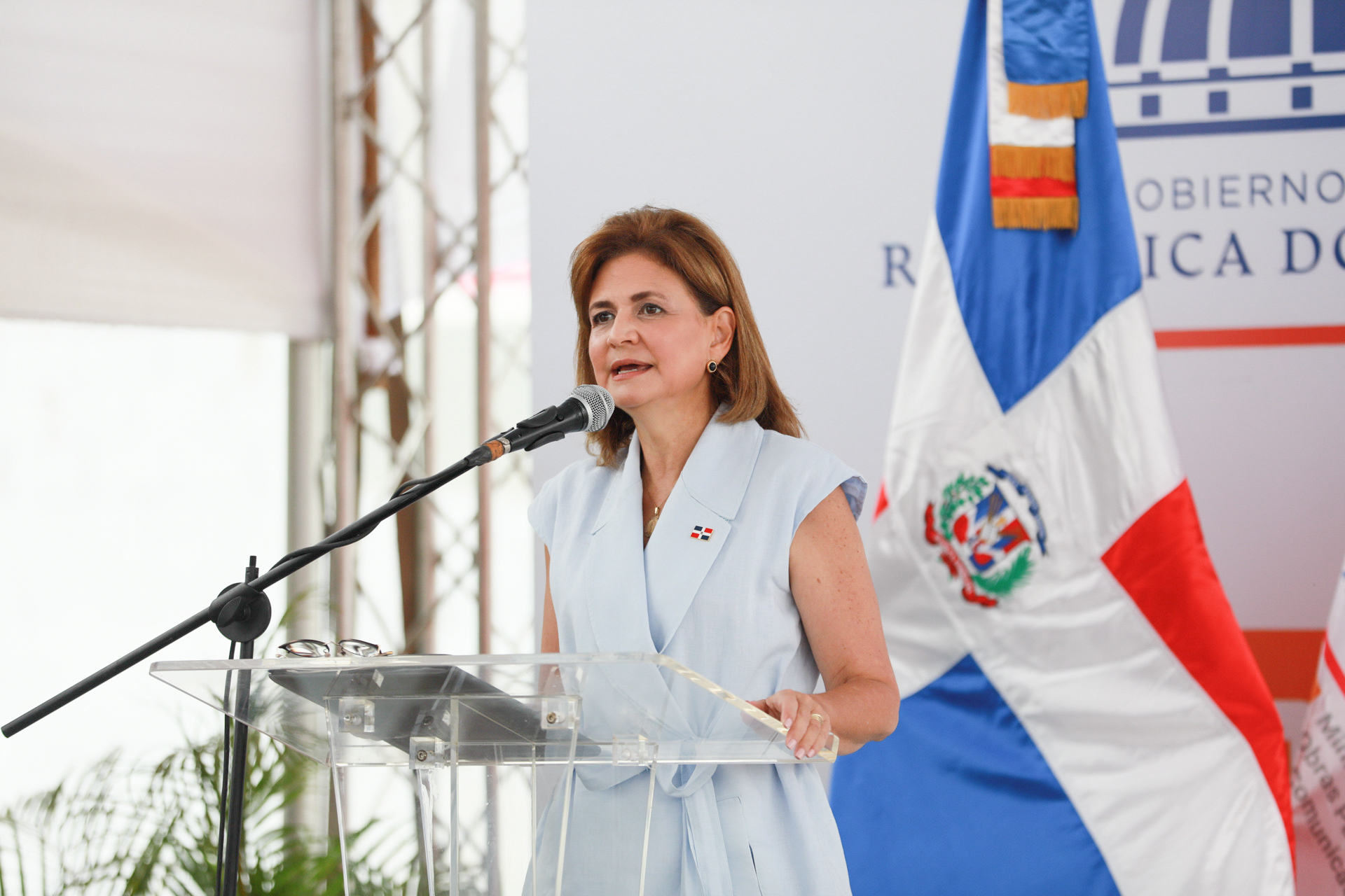 La vicepresidenta Raquel Peña encabezó el acto de inauguración de la construcción y reconstrucción de calles internas en el sector Palmarito, cuyo proyecto fue ejecutado por el Ministerio de Obras Públicas y Comunicaciones, en Monseñor Nouel. Monseñor Nouel, República Dominicana. 20 de Julio del 2024. VP/ Sintia Méndez