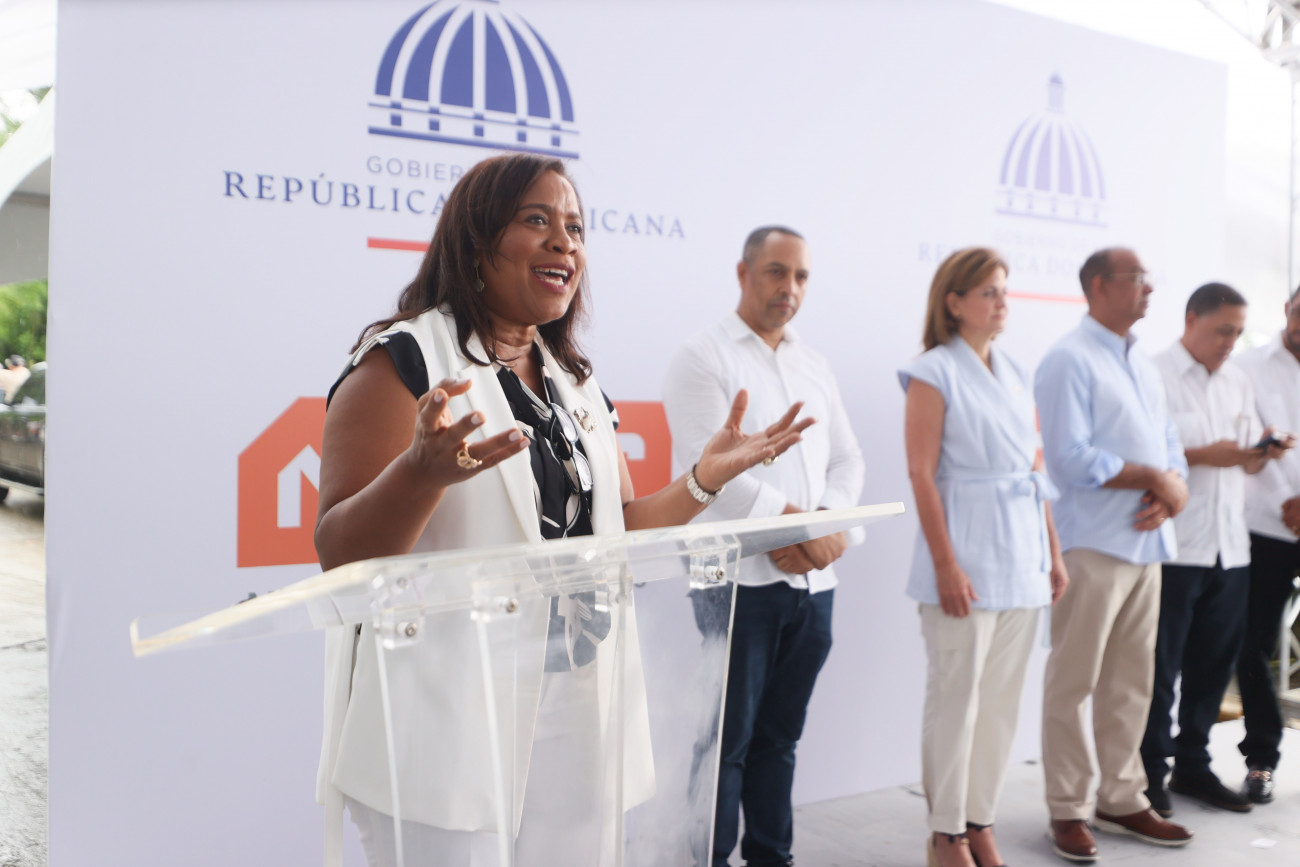La vicepresidenta Raquel Peña encabezó el acto de inauguración de la construcción de un nuevo muro de gaviones en Arroyo Toro-Masipedro, Monseñor Nouel. Monseñor Nouel, República Dominicana. 20 de Julio del 2024. VP/ Félix Hirujo