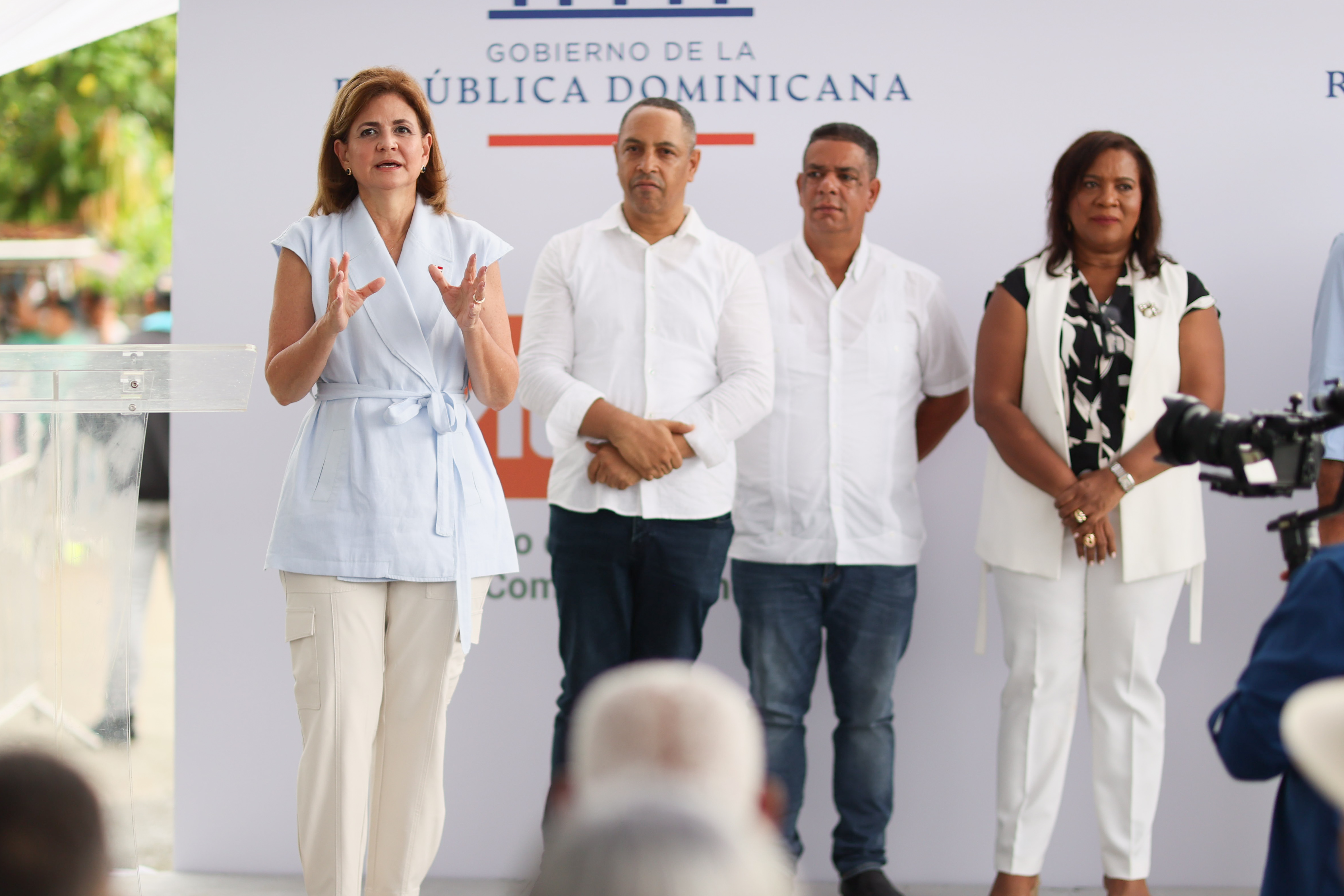 La vicepresidenta Raquel Peña encabezó el acto de inauguración de la construcción de un nuevo muro de gaviones en Arroyo Toro-Masipedro, Monseñor Nouel. Monseñor Nouel, República Dominicana. 20 de Julio del 2024. VP/ Félix Hirujo