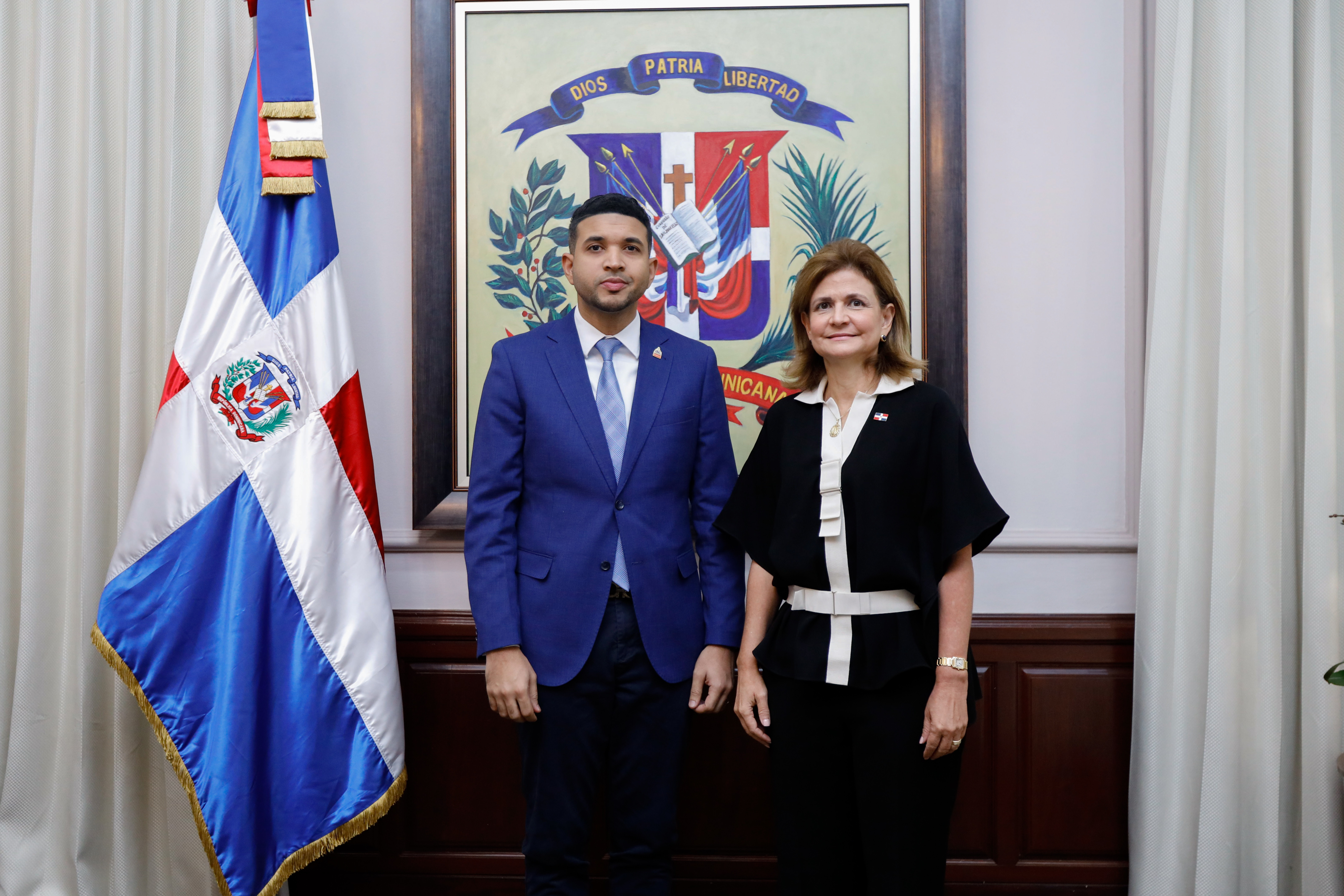 La vicepresidenta Raquel Peña tomó juramento al señor Carlos Valdez como el nuevo ministro de la Juventud, quien es ingeniero civil y magíster en Economía Verde y Estrategias de Sostenibilidad, y cuenta con más de 15 años de experiencia en el ámbito político, destacándose por su visión innovadora y su compromiso con el desarrollo comunitario. Santo Domingo, República Dominicana, 22 de Julio 2024. Vp/ Amehd Gitte