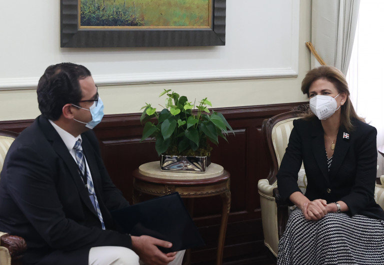 La vicepresidenta Raquel Peña se reúne con el Sr. Oscar Schwarzbartl, segundo vicepresidente de la Cámara de Comercio y Producción de Santiago; y la Sra. Marypily López, presidenta de la Asociación de Bodas y Eventos Sociales e Institucionales en la República Dominicana (ABERD). Despacho de la vicepresidencia, Palacio Nacional. Santo Domingo. República Dominicana. 18 de Enero del 2021. VP/Ricardo Rojas